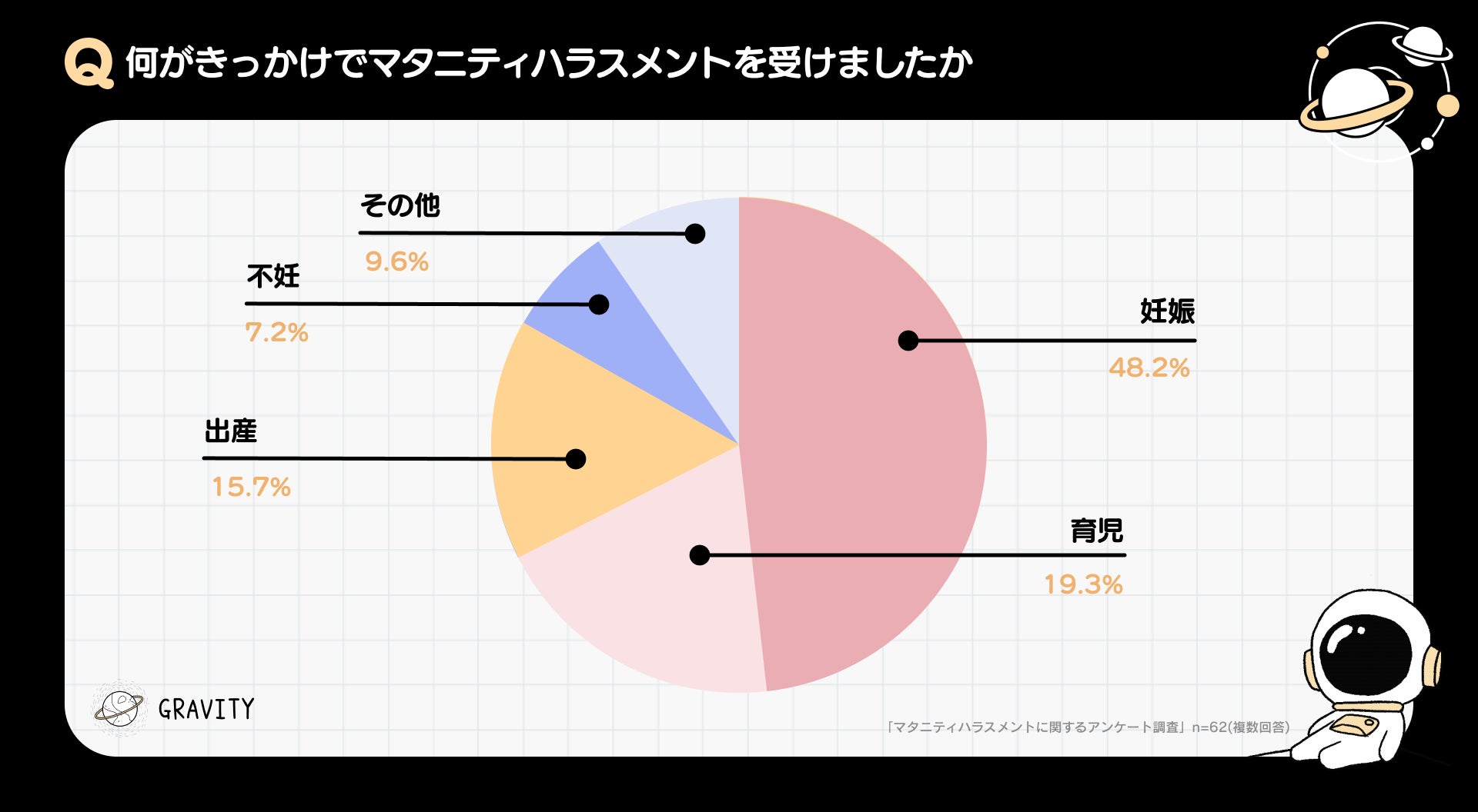 マタニティハラスメントのきっかけは「妊娠」が48.2%。