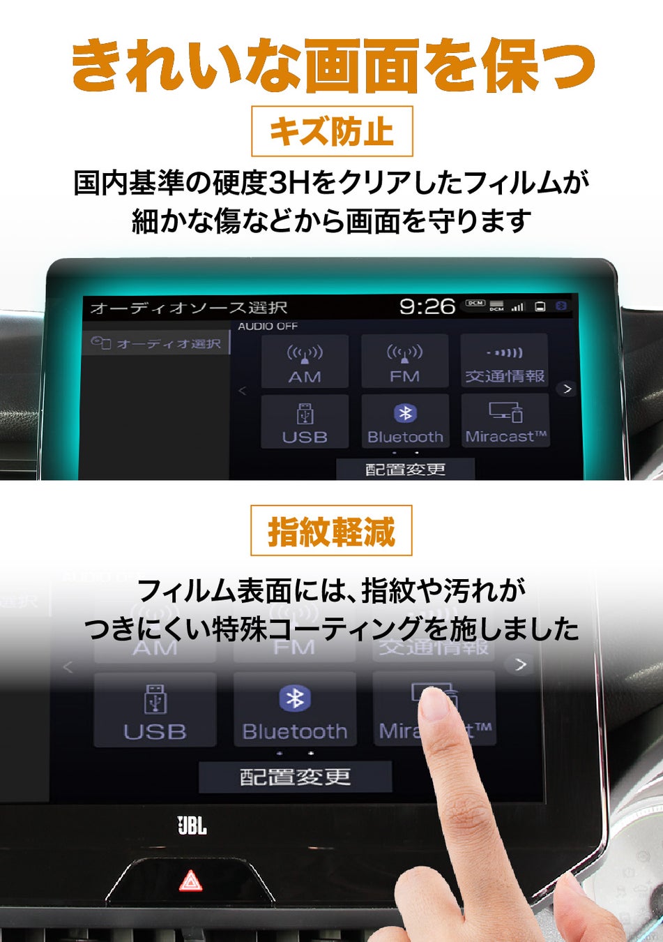 反射率1.1%の低反射フィルムなので、反射や映り込みを軽減し、明るい車内でも画面が見やすくなります。