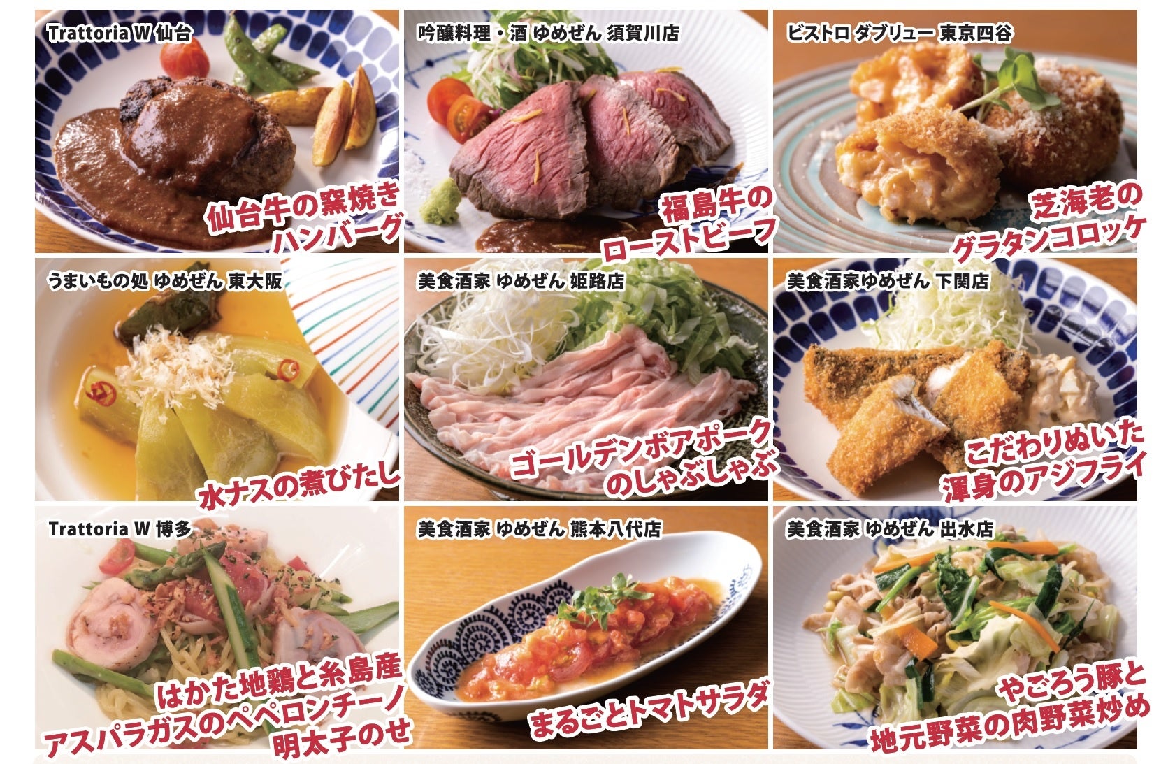このプロジェクトの一環として、食で地域の魅力を発信することを目的に「おらが町グルメフェア」を実施します。全国各地にある直営レストラン・居酒屋9店舗の料理長が工夫を凝らし、2か月に一度、新しいメニューが登場します。地域の旬食材をいつもとは違う食べ方で、美味しくアレンジしたメニューでご提供しますので、近隣にお住まいの方も、出張や旅行でホテルにお泊りの方もお楽しみいただけます。