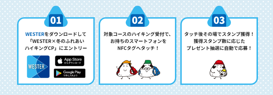 本キャンペーンではハイキングに参加いただくことで獲得できるWESTER上のスタンプを集め、獲得スタンプ数に応じて抽選で素敵な賞品が当たります。