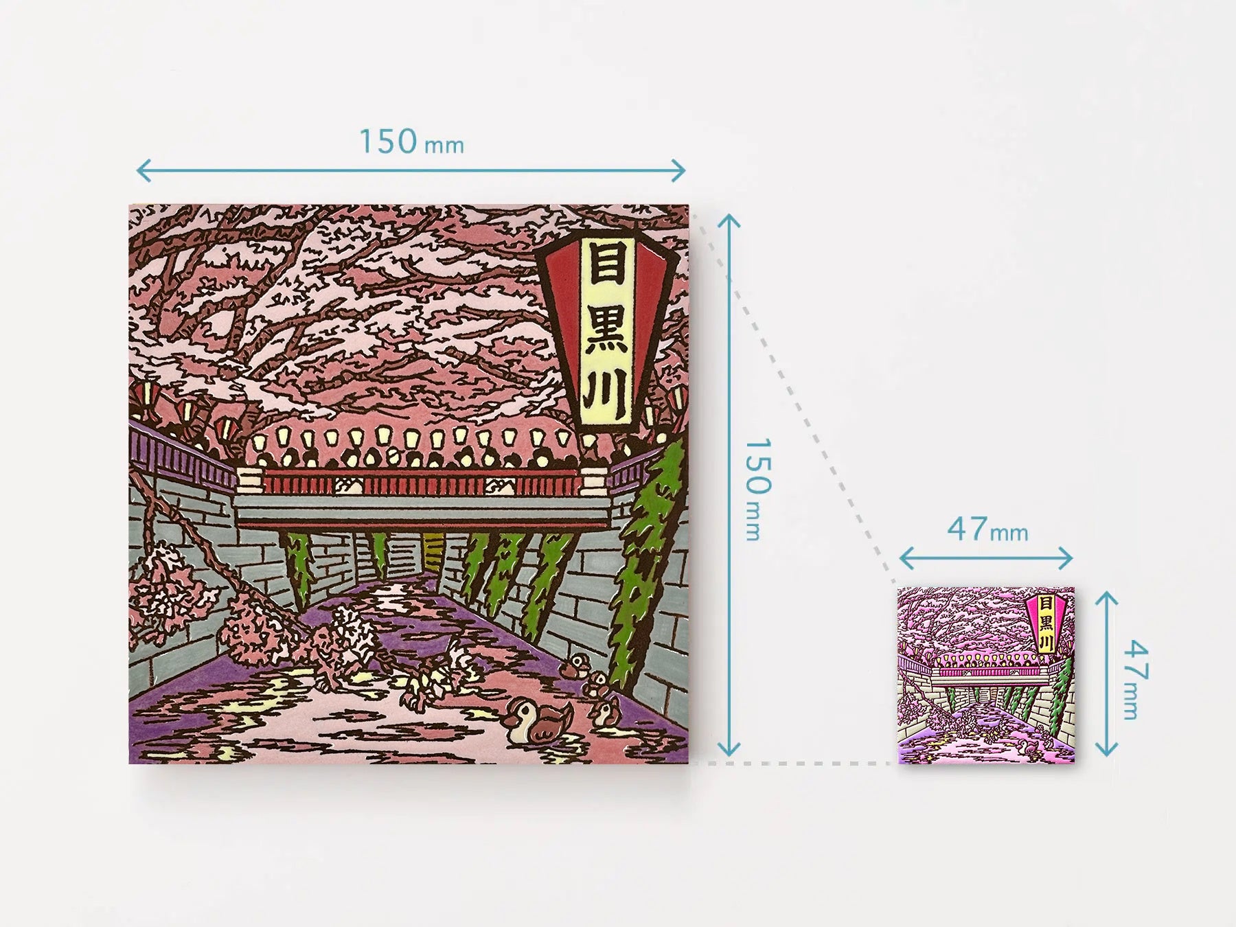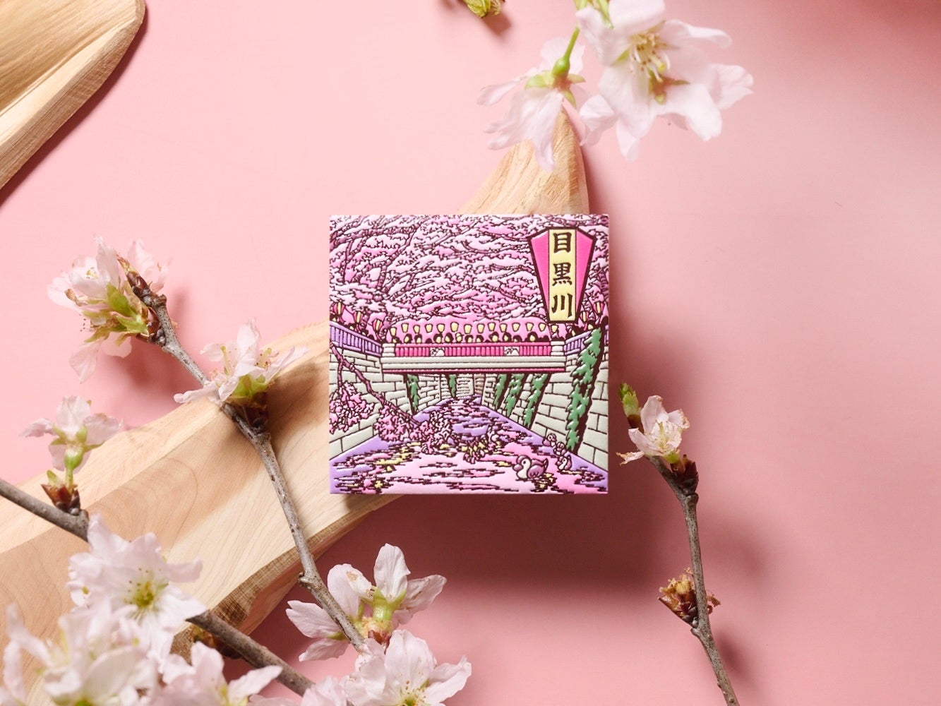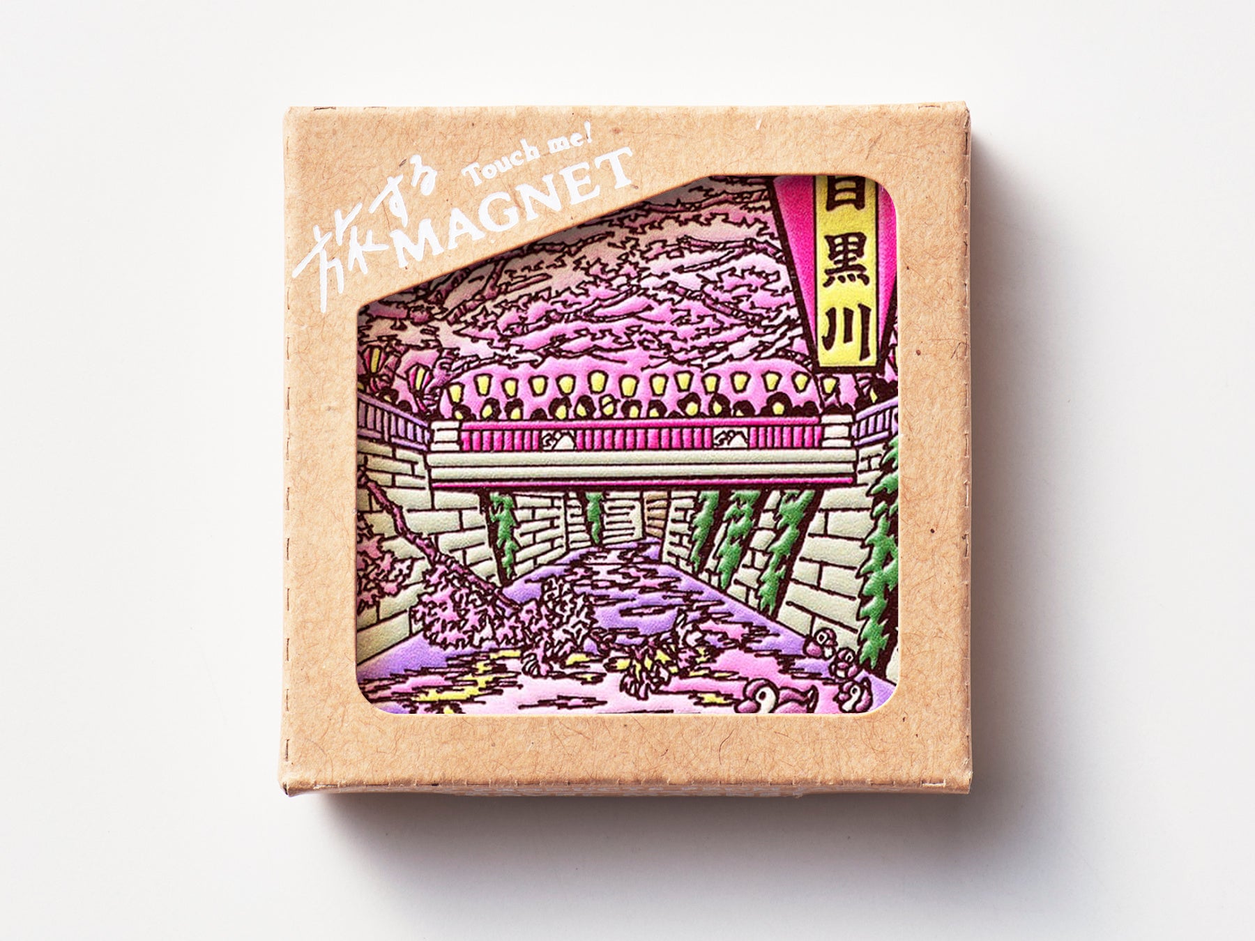イベントの開催地である、中目黒をモチーフにした旅するマグネットの新作「東京 目黒川桜まつり」を先行発売いたします。本商品のデザインは、東京出身のイラストレーター・つちもちしんじさんが担当しました。