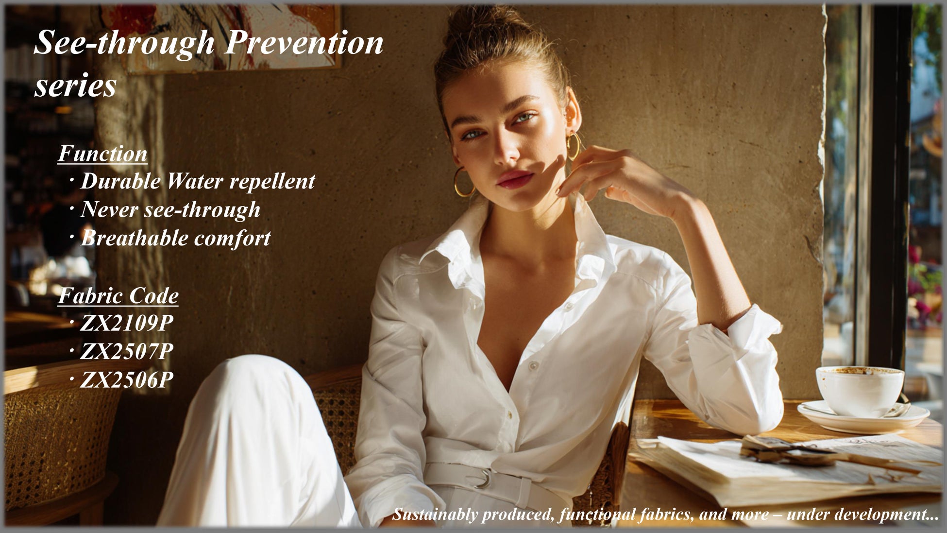 1948年創業の総合アパレルメーカー(カイタックグループ)会社の 1 つ。「人にやさしく、環境にもやさしい、Multifuctional & Sustainable」をコンセプトに高感度な機能素材の開発を得意とする。
