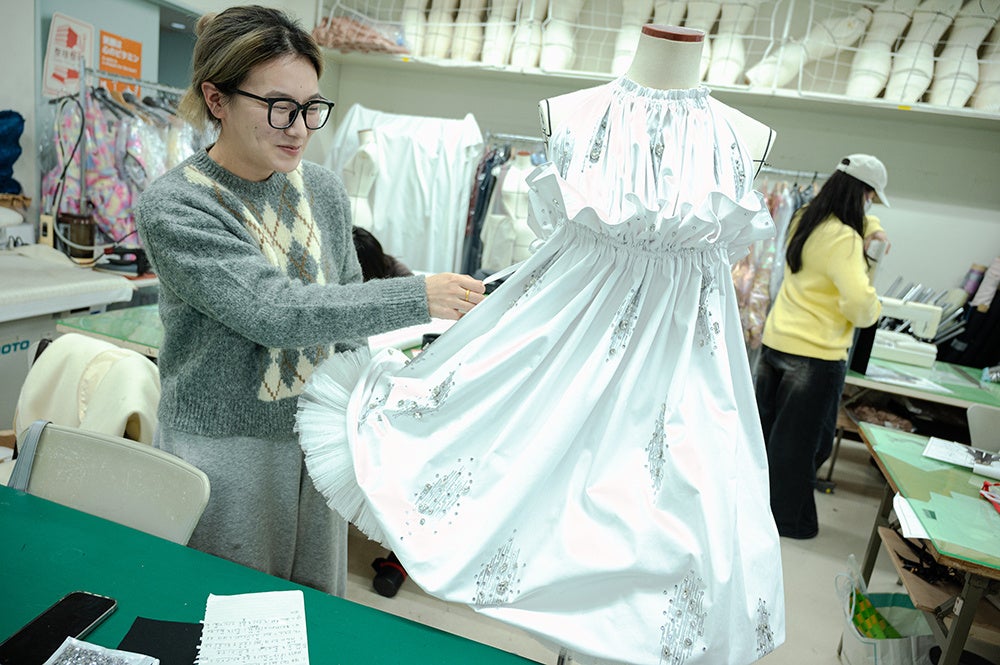 本プロジェクトは、アパレル業界の未来を担う次世代のクリエイターが、サステナブルな素材「ZERO-TEX®︎」を通じて環境問題解決の糸口を探る取り組みです。今回、同社より素材提供を受け、ファッション高度専門士科4年の学生7名が参加。学生たちは、生地が持つ機能性や肌触り、質感といったさまざまな魅力を引き出しながら、学びの集大成となる卒業作品を完成させました。