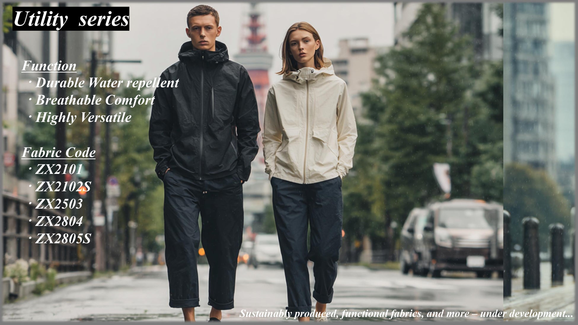 マウンテンパーカーなどアウトドア・スポーティなアイテムだけでなく、シャツやブラウスにも使えるLight Weightな平織から、ボトムスやアウターなどにも使えるHeavy Wightなツイルを展開。このUtilityシリーズがあれば、日常着のアイテムづくりに1年中事欠かず、そして 突然の雨や、コーヒーやジュースをこぼしてしまった時、その効果に感動を覚えることでしょう。