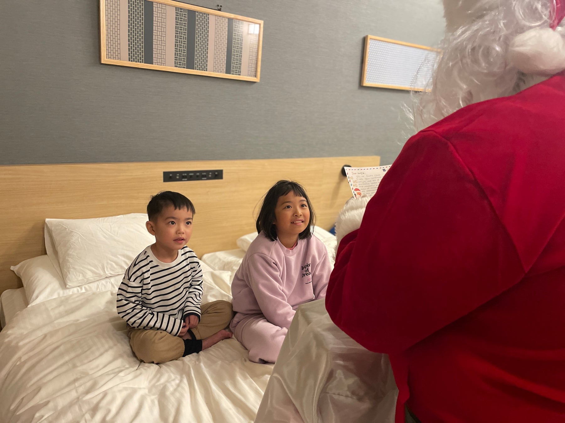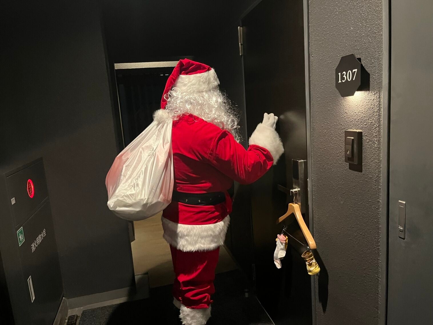 12月24日、滞在中のゲストを対象に、サンタクロースがお部屋を訪れて、事前にお預かりしたプレゼントをお届けするクリスマスサプライズを実施しました。旅行中でも自宅のような温かなクリスマスを楽しんでいただき、子どもたちの夢を叶える特別なひとときを提供しました。また、ロビーにもサンタクロースが登場し、お菓子を配ったり一緒に写真撮影を楽しめるミニイベントも開催。ゲストとともに、笑顔に包まれた特別なクリスマスイブを過ごしました。