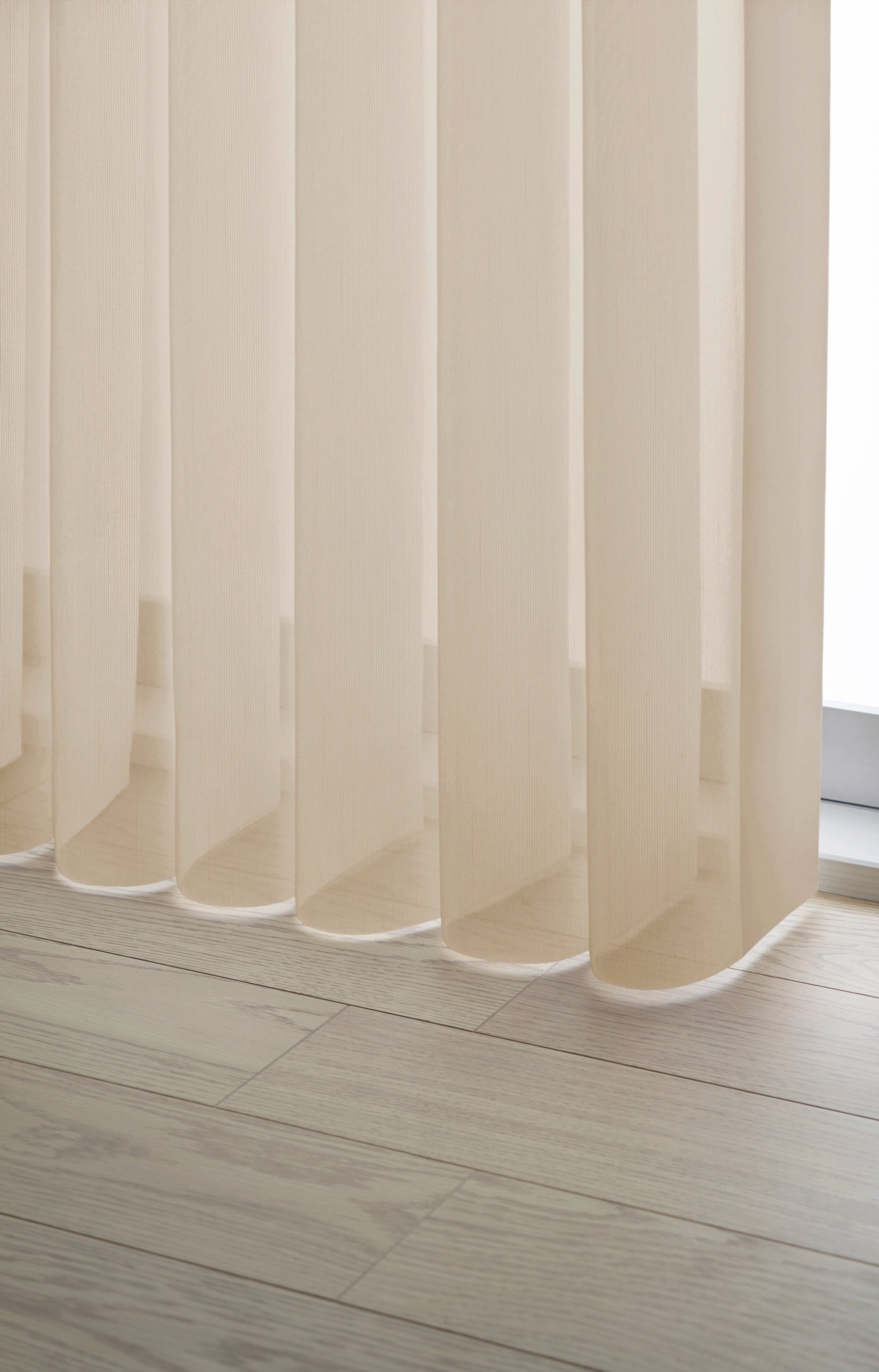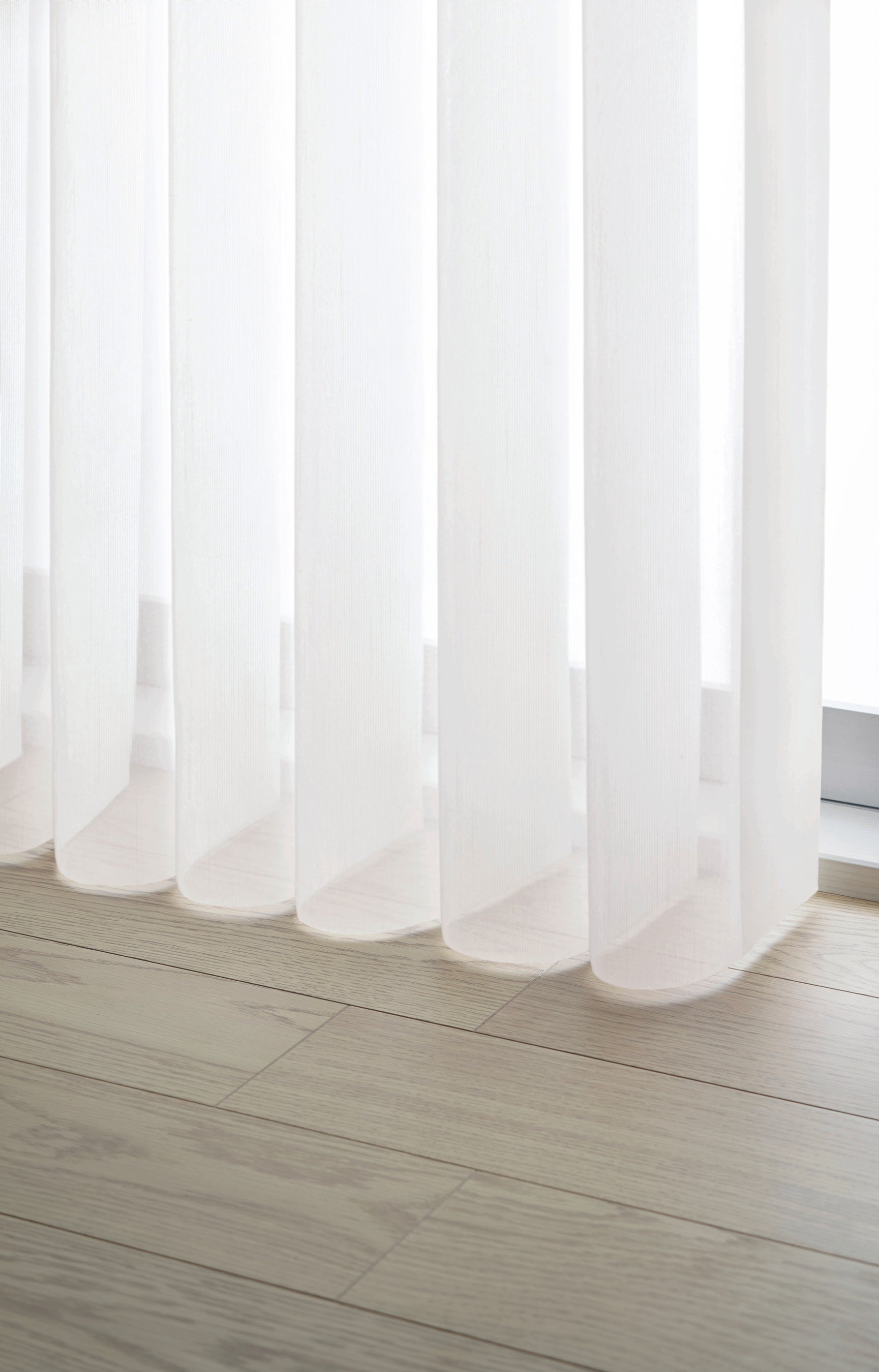 調光タテ型ブラインド「エアレ」は2024年2月の発売以来人気のアイテムです。カーテンのようにやわらかく美しいウェーブのデザインに加え、外からの光を採り入れる量を自在にコントロールできる調光機能、生地と生地の間から自由に出入りができる点、生地の下部にコード類が無く安全性が高い点などへの評価が高く、戸建やマンションを中心とした住宅シーンで人気のアイテムとなっています。