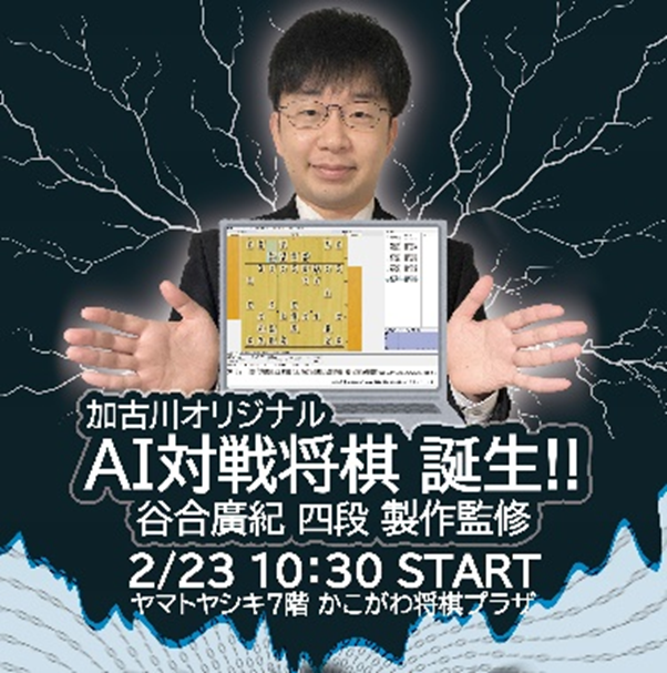 兵庫県加古川市(市長 岡田 康裕)の一般財団法人加古川市ウェルネス協会は、JR加古川駅南の商業施設「ヤマトヤシキ」(兵庫県加古川市加古川町篠原町21-8)の7階にある「かこがわ将棋プラザ」に、この度、谷合廣紀四段が加古川市のために製作監修したオリジナルAI将棋ソフトを導入しました。