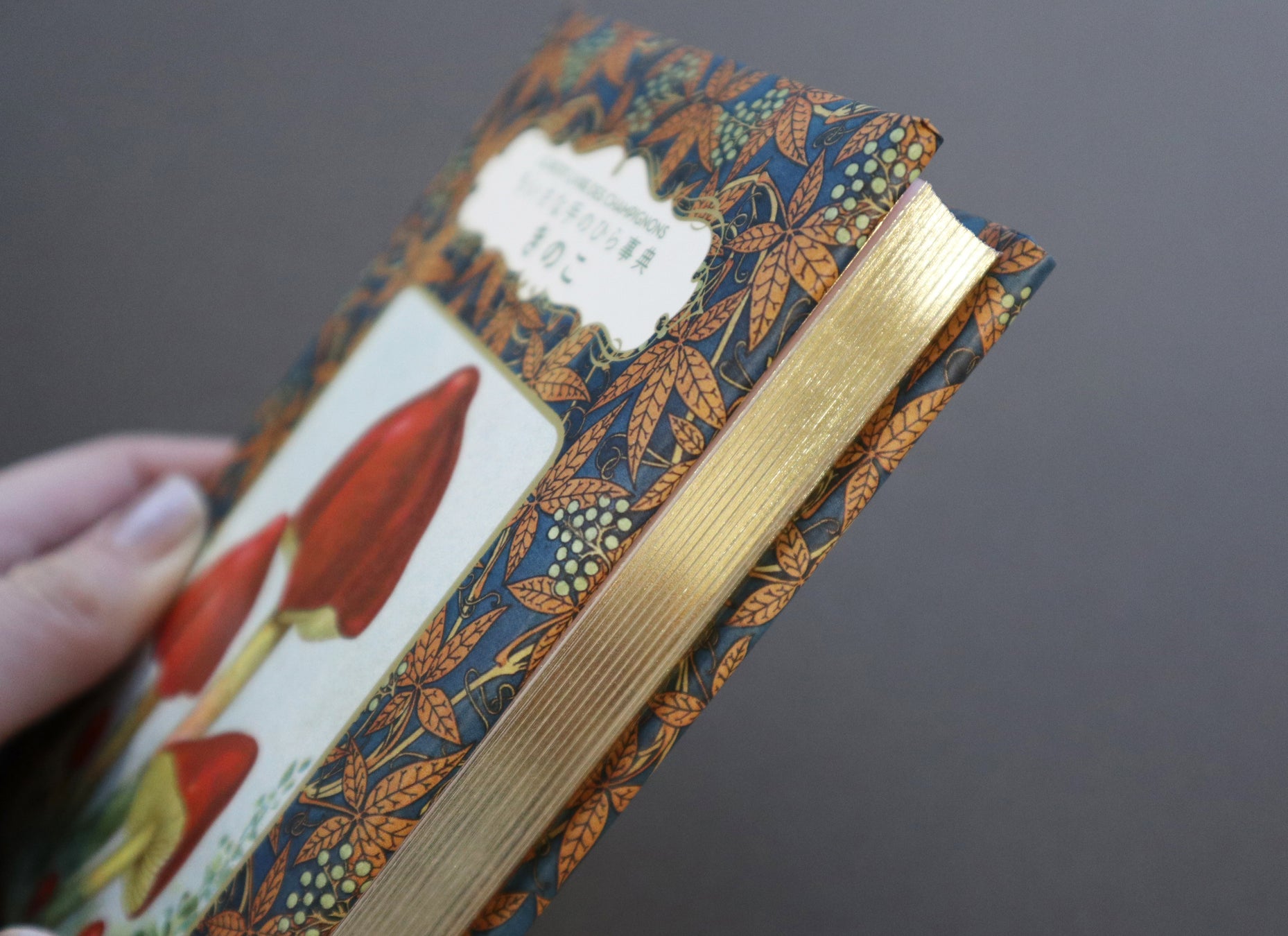 手にすっぽり収まるサイズ感(150×100mm)、クッションのようなふわふわ表紙、ページの縁を彩る華やかな金が目にも鮮やかな造本が特徴。かわいらしい佇まいがギフトにぴったりです。