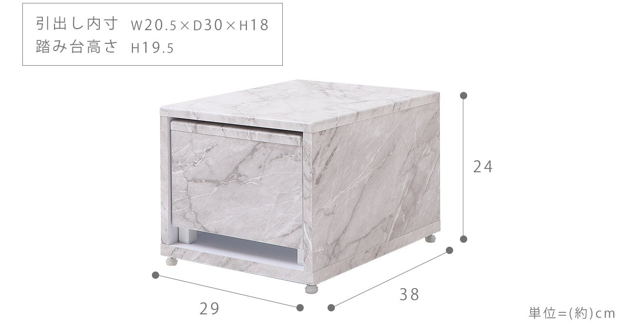 商品サイズ:約29×38×24cm(全体)、約20.5×30×18cm(引出し内寸)、約19.5cm(踏み台高さ)