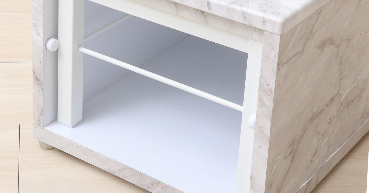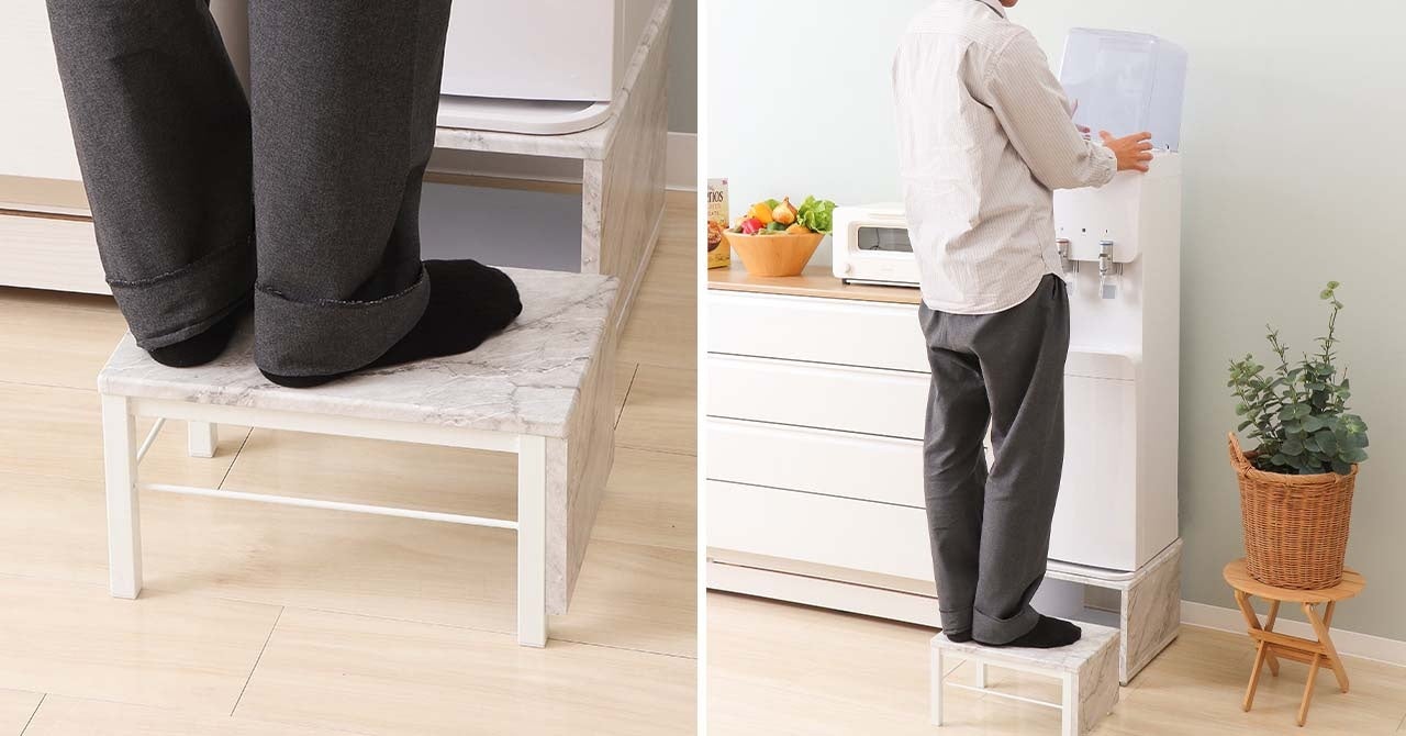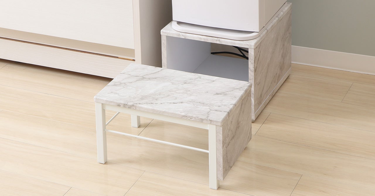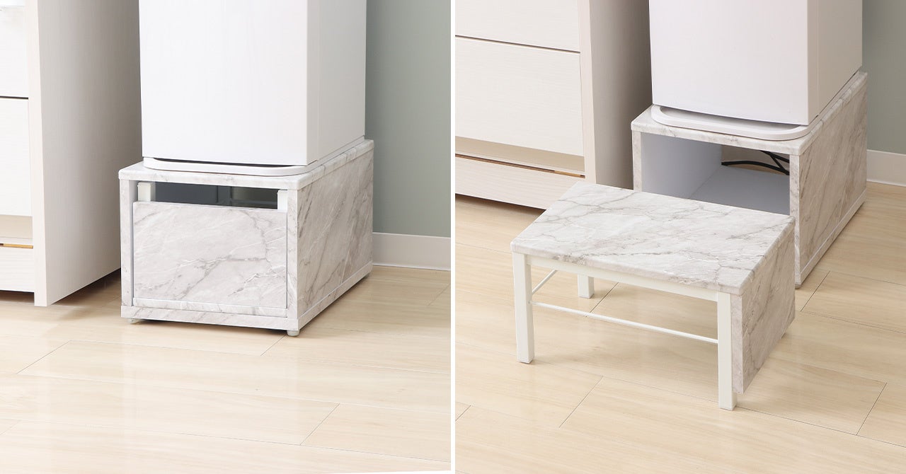 台としての機能だけではなく、内蔵された踏み台を使ったり、引き出しタイプの収納庫として使ったり、移動も楽になったりと色々活躍してくれる便利アイテムです。