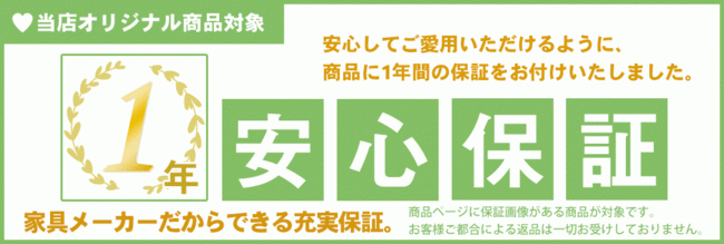 ヤマソロが開発したオリジナル商品は、安心の一年保証がついています。家具メーカーだからできる充実保障。安心してご愛用頂けます。