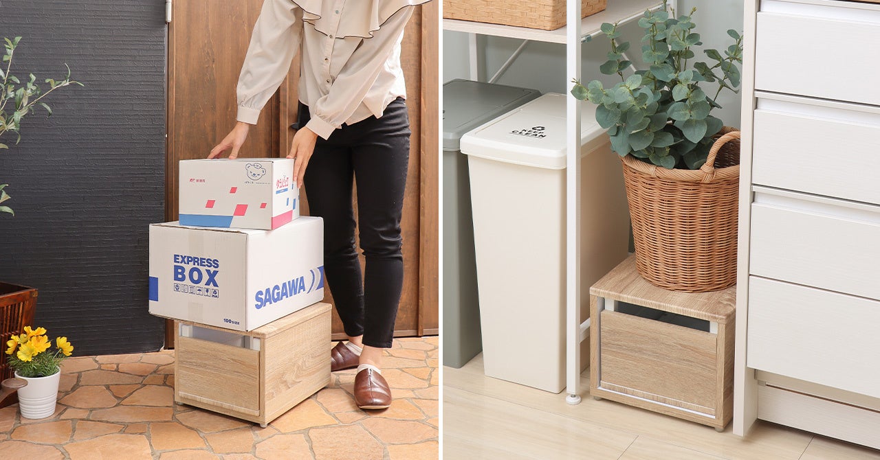 踏み台として使わない場合は、ひっくり返すと引き出しとして使えます。