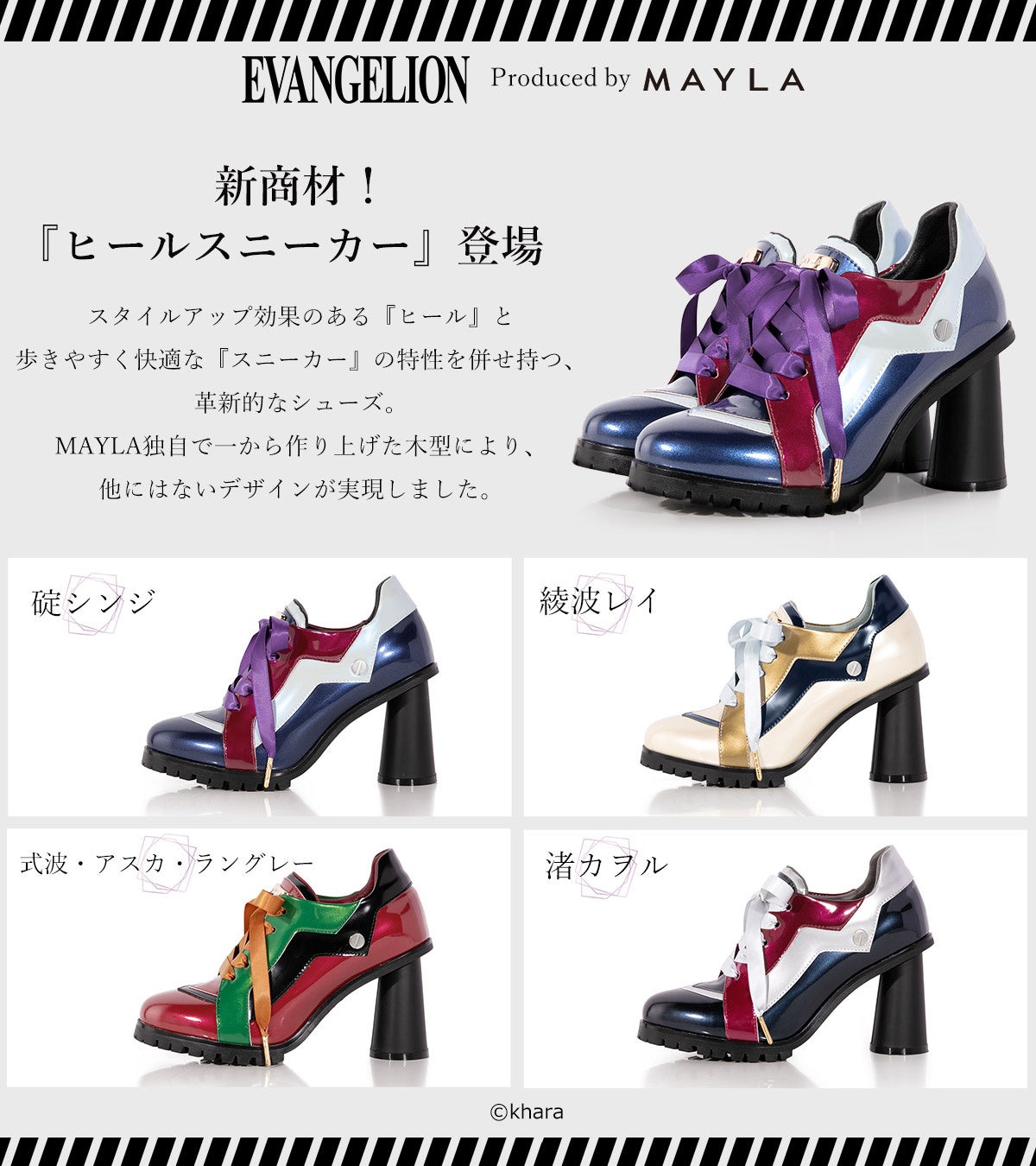 『エヴァンゲリオン』×MAYLA 新商品「ヒールスニーカー」が登場!2024年3月17日(日)12:00まで受注予約受付中!