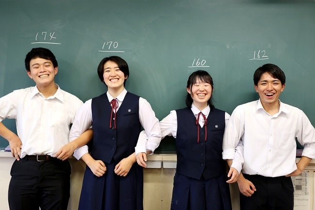 教室で撮影されたものですが、とてもいい笑顔ですね。手を組んでいる姿も仲の良さが表現できています。よくあるような写真ですが、黒板に身長の数字を書いたところが面白いなと思いました。制服の色味もきれいに撮れています。教室の中はまだまだ工夫すればいろいろな撮影ができると思っています。(審査員:椙野充義氏)