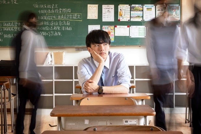 とても考えてつくられた作品だと思います。真ん中の男の子が、思いを馳せていることが伝わってきます。3年間の高校生活の中でいろいろな経験をし、周りの友達もいろいろな方向へ考えを持って進んで行こうとする姿を一枚に収めた構成力が素晴らしいです。(審査員長:織作峰子氏)