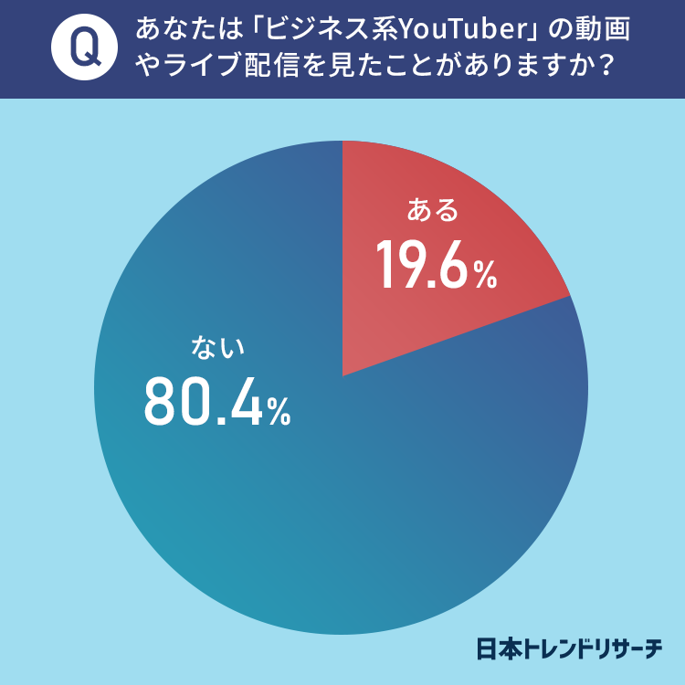 今回は、ビジネス系YouTuberの動画やライブ配信を見たことがあるかについての調査を行い、19.6%の方が「見たことがある」と回答しました。
