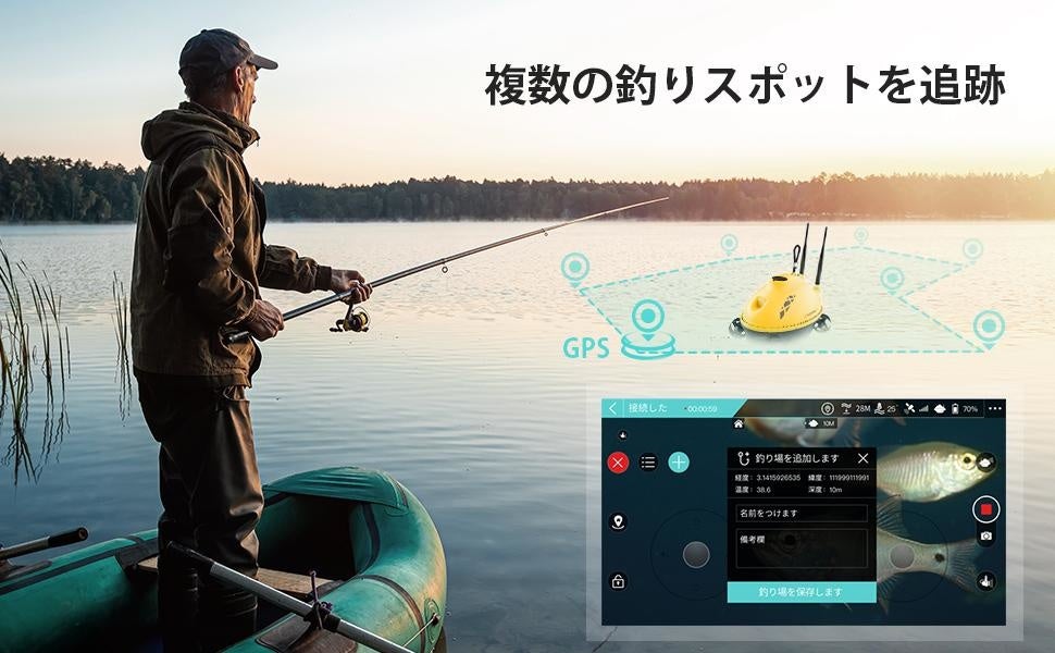 水底地形、魚層の分布を観察し、リアルタイムで水温や水深の値を測定するなど様々な機能を搭載し、より効率的に水下探査を進める釣友の最強の味方です。--水中ドローンF1