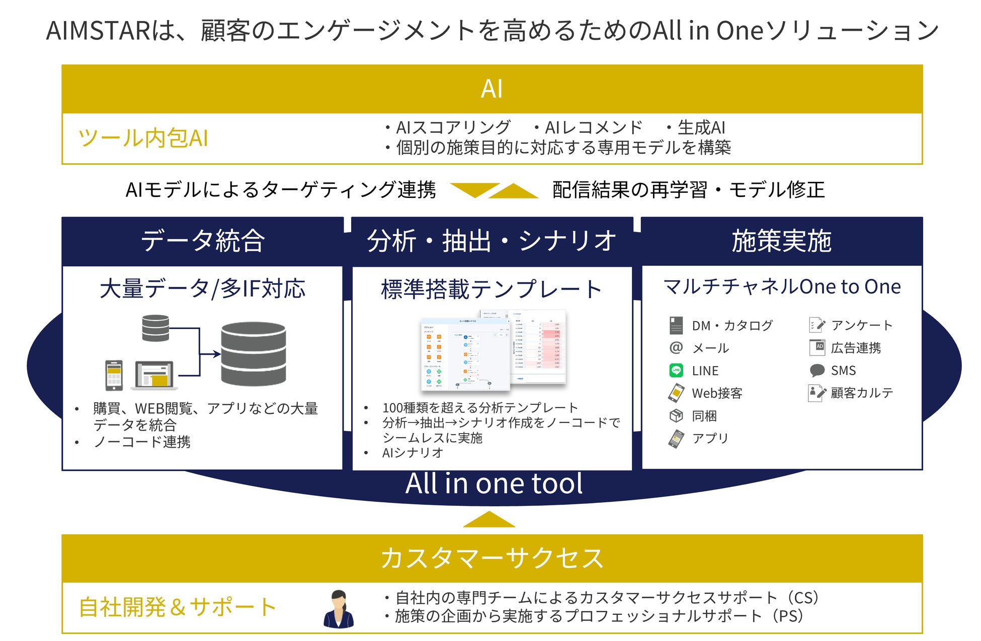 顧客行動を捉えて、顧客ごとに最適なコミュニケーションを実施していくためにMA(マーケティング・オートメーション)の導入を検討されてきました。今回、複数のメディアの顧客行動を一貫して捉え、分析し、施策につなげていくために、データ活用の柔軟性と拡張性を併せ持つAIMSTARを採用いただきました。
