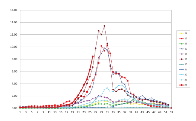 国立感染研究所 手足口病 過去10年との比較グラフ