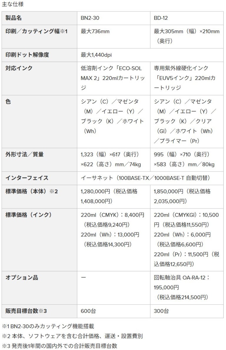 業務用インクジェットプリンターを製造・販売するローランド ディー.ジー.株式会社は、2025年3月27日から日本において先行販売を開始した「VersaSTUDIO(バーサスタジオ)」シリーズ最新モデルの溶剤インクジェットプリンター「BN2-30」とUVフラットベッドプリンター「BD-12」を本日よりグローバルで発売いたします。