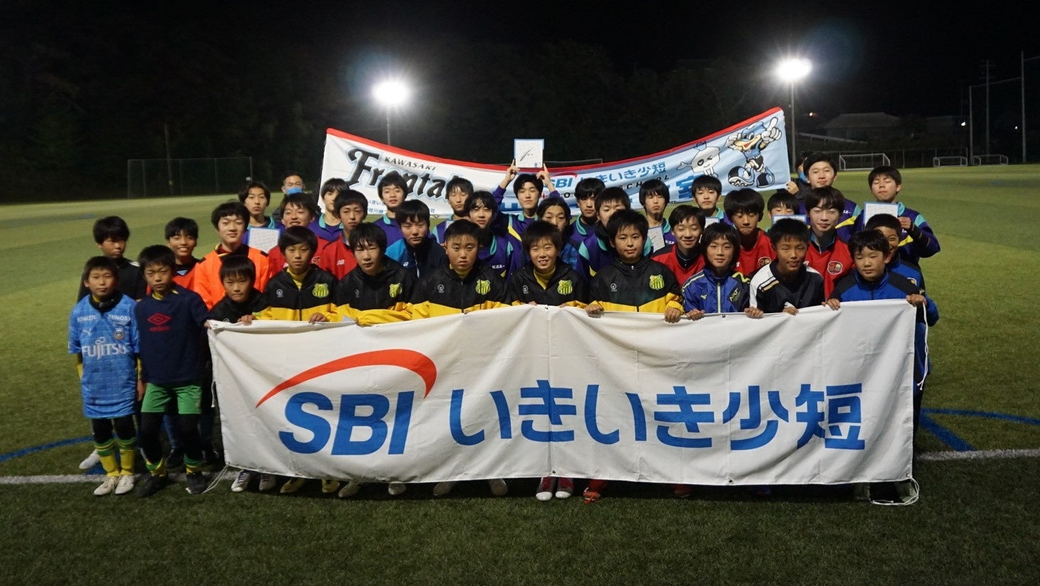 2016年からはスポーツを通じて子どもたちが健やかに成長することを願い、当社がオフィシャルパートナーを務めているJ1リーグ 川崎フロンターレの協力のもと、「SBIいきいき少短サッカー教室 in 大船渡」を開催しています。2022年は、新型コロナウイルス感染症の影響により3年ぶりの開催となり、5回目を迎えました。