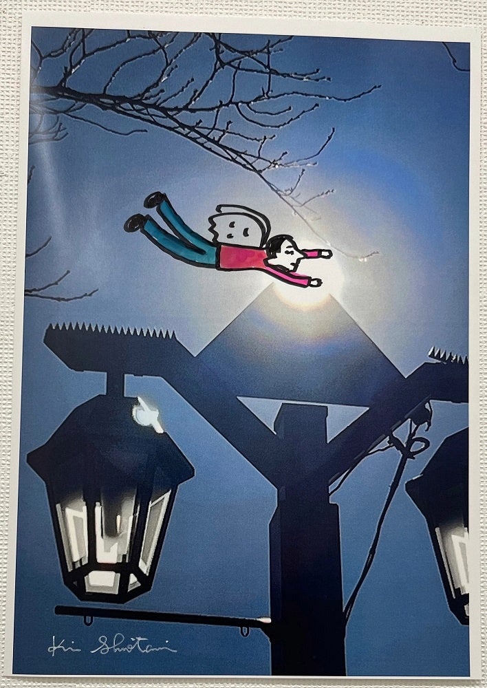 キン・シオタニ氏の画風のひとつで、旅するイラストレーターならではの視点で自身で撮影された写真にイラストが描きこまれる旅とアートが融合した作品