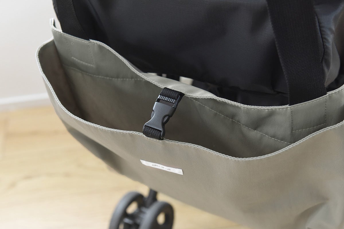 ベビーカーでのスーパーの買い物も、もう怖くない!レジかごを収納できる、「ベビーカー用ハンギングバッグ」がkukka ja puuから新登場!