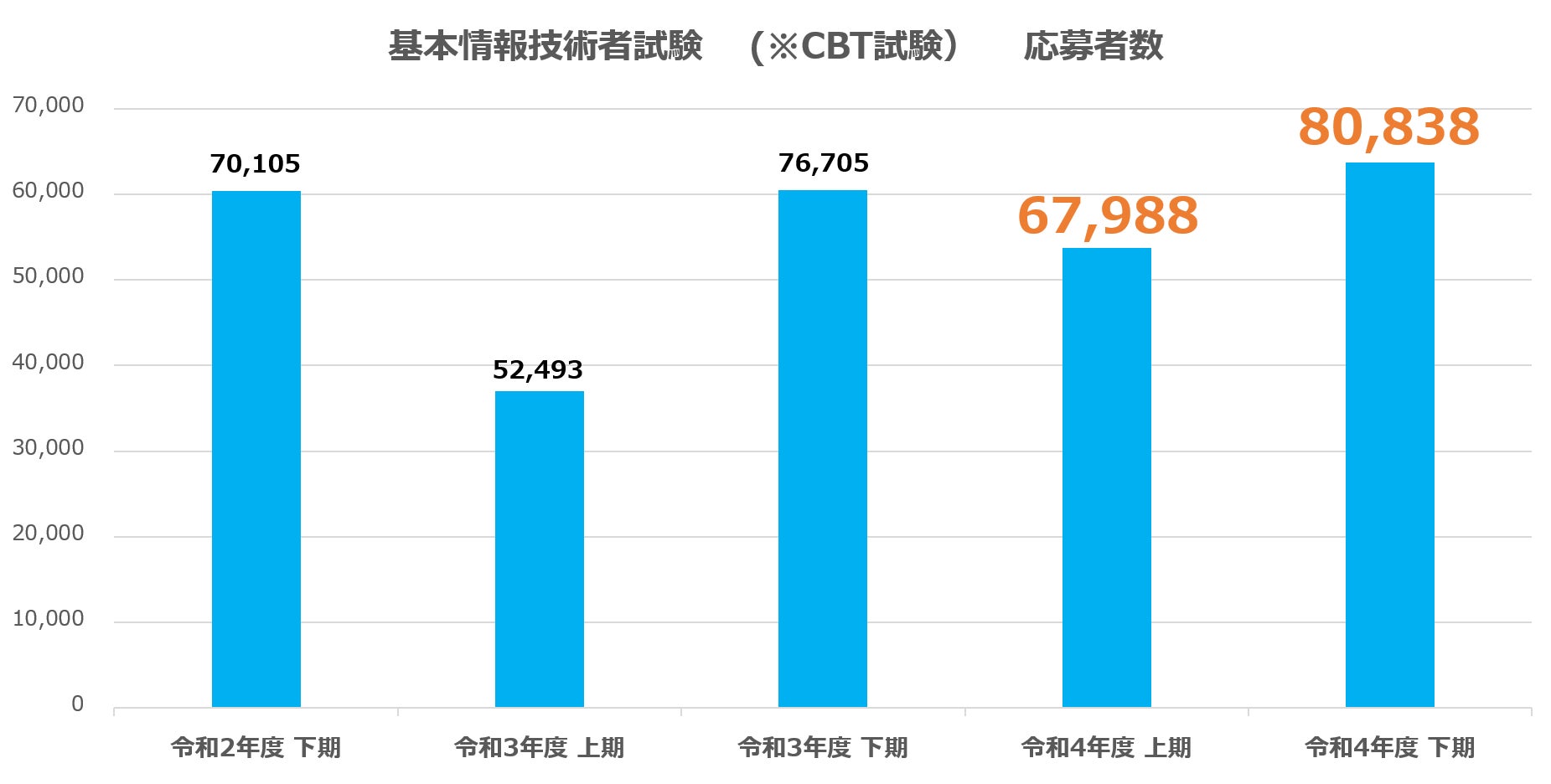 2020年下期からCBT化をした基本情報技術者試験の受験者推移です。