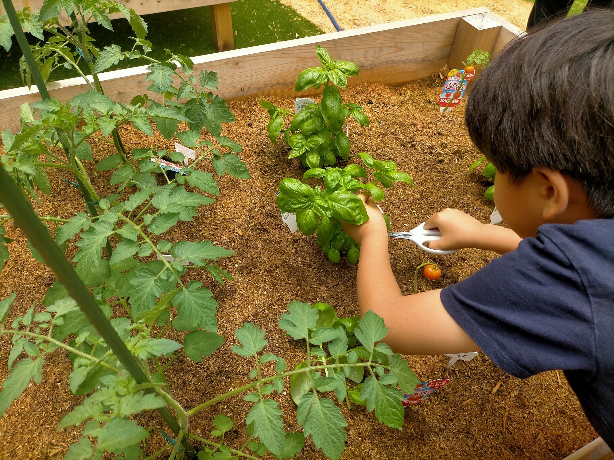 現在は、利用登録いただいた市民の皆様と、専門の栽培指導員が、当社の『グロウアース』を使った花壇で野菜の栽培を行っており、「トマト」「ナス」「ハーブ」などを共同栽培しています。また、栽培体験の提供だけでなく、6月7日には、菜園利用者以外も参加できる、県内の農業学校で採れた野菜を販売するマルシェも開催するなど、近隣住民が気軽に集まることのできるコミュニティの場としても活用いただいています。