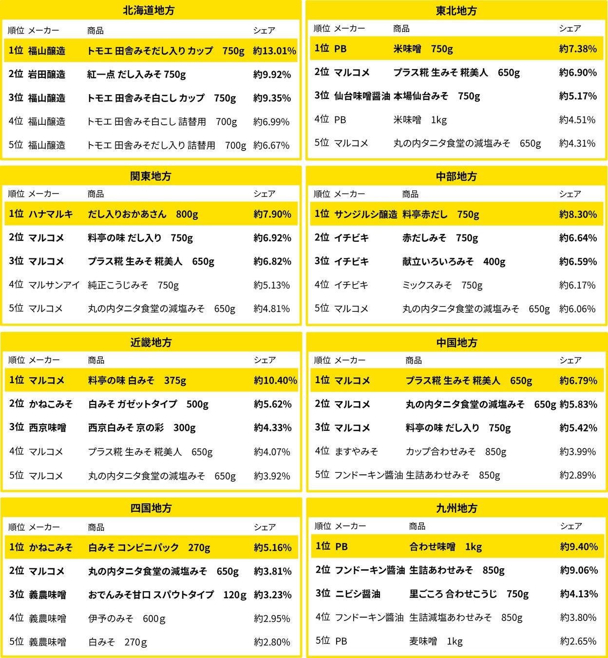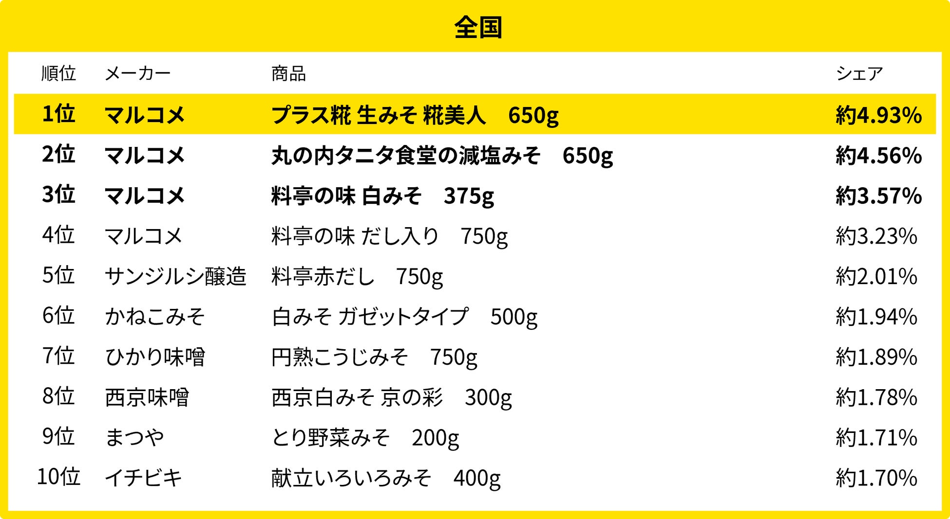 230万人のレシートデータから見る「買い物動向」調査 12月、全国・地方別の味噌売れ筋ランキング