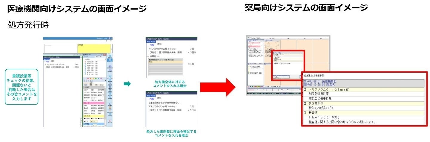 ウィーメックスとWHSは、病院や診療所などの医療機関向けだけでなく、薬局向けにもシステムを提供しています。医療機関と薬局の双方にシステムを提供している強みを生かし、医薬間で伝達事項がある場合にアラートを出す等の独自の価値創出を行っています。