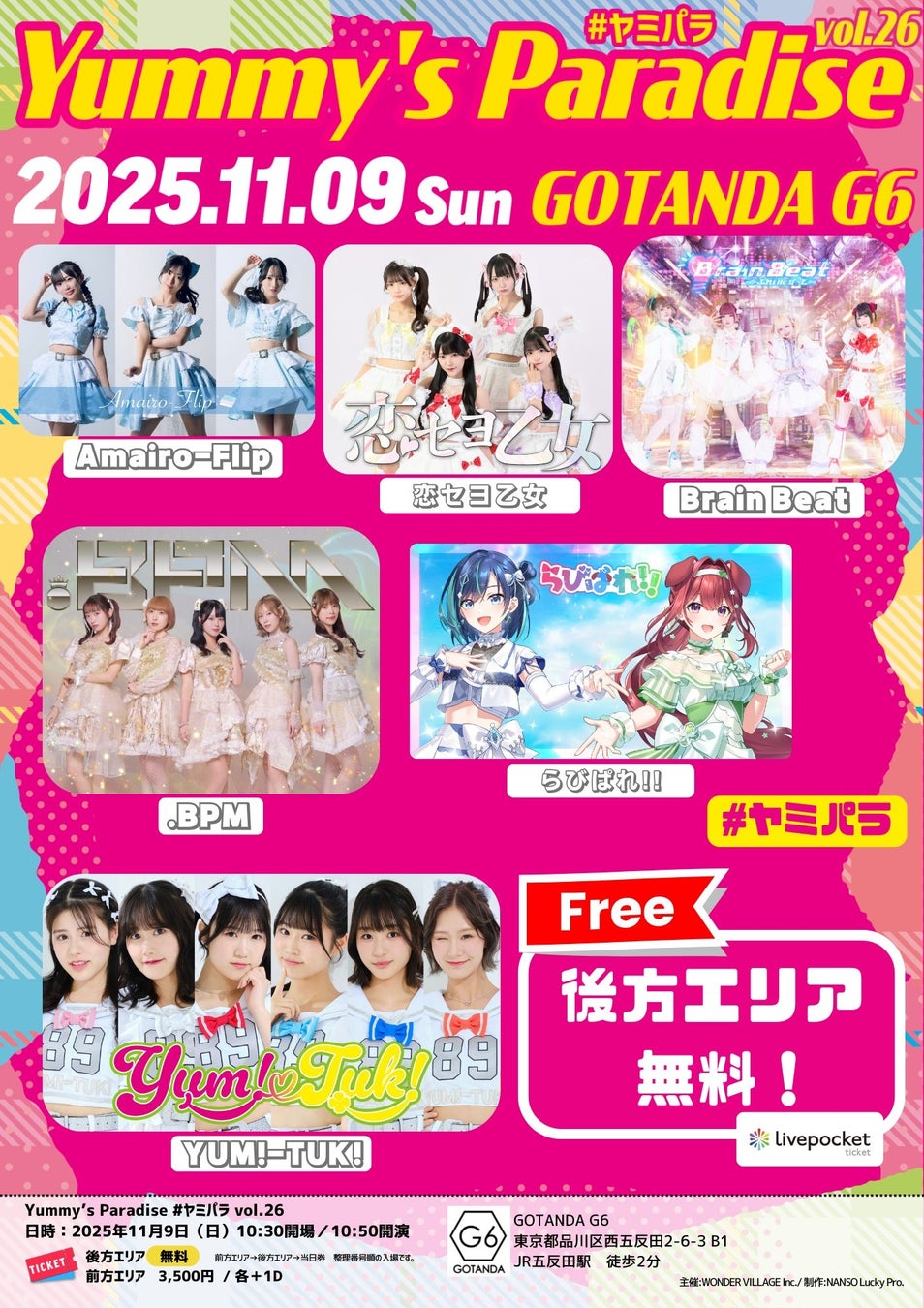 株式会社Blackbox(本社:東京都新宿区、代表取締役CEO:坂本龍優)が運営するVTuberプロダクション「ラブボックス」所属のアイドルVTuberグループ『らびぱれ!!』は、11月9日(日)GOTANDA G6にて行われた、対バンイベント「Yummy's Paradise vol.26」にVTuberとして初参加しました。