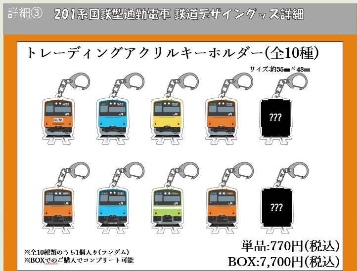 通勤・通学でご利用いただいた、あなたの推しカラーの201 系のグッズをゲットして、あの頃の“201 系の雄姿”に思いを巡らせてみてはいかがでしょうか。