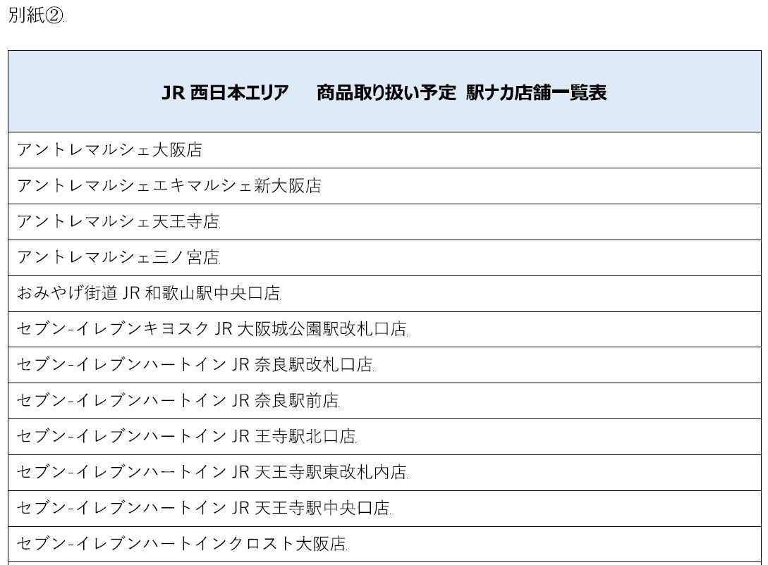 ・JR ⻄日本関⻄エリアの駅ナカ店舗(詳細別紙②)