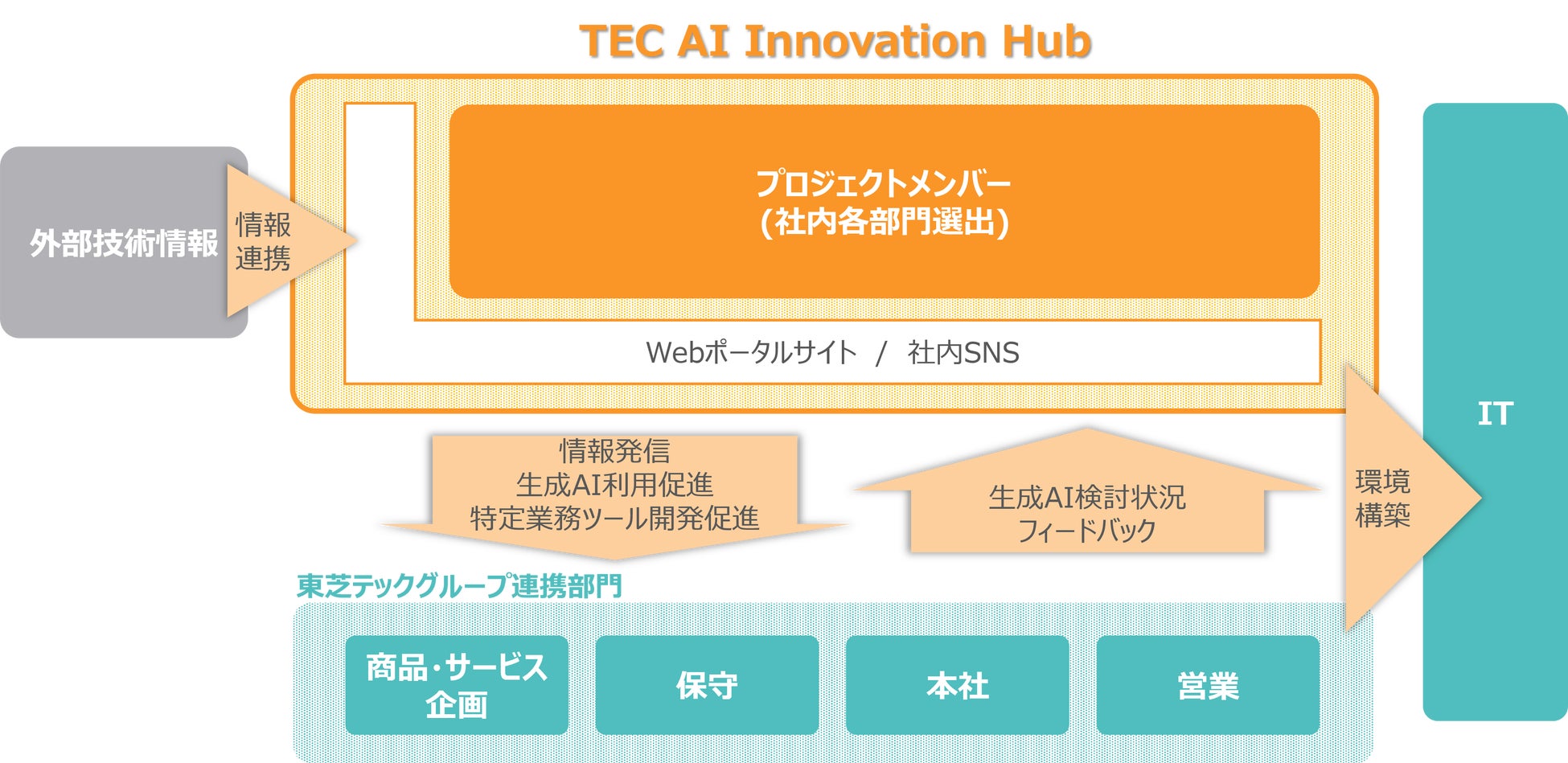 東芝テック株式会社(以下「東芝テック」)は、生成AIの活用を促進するため、全社タスクフォース「TEC AI Innovation Hub」を結成し、2024年11月1日より活動を開始します。