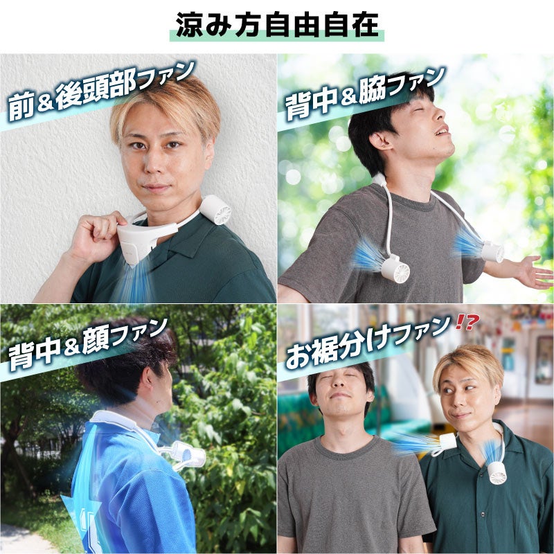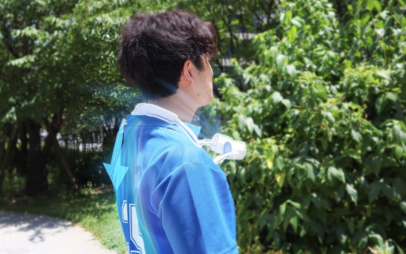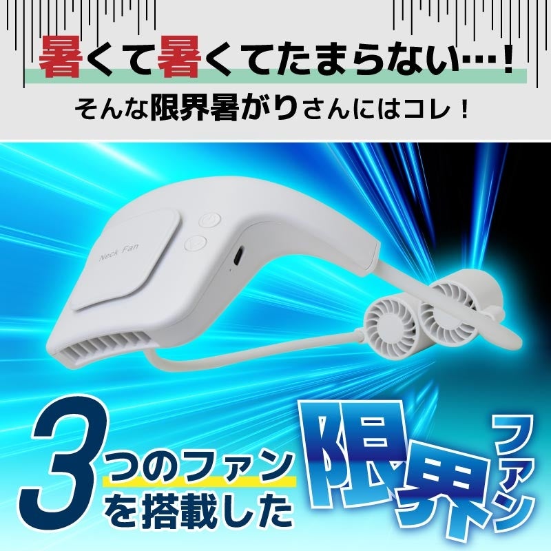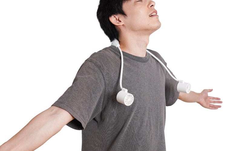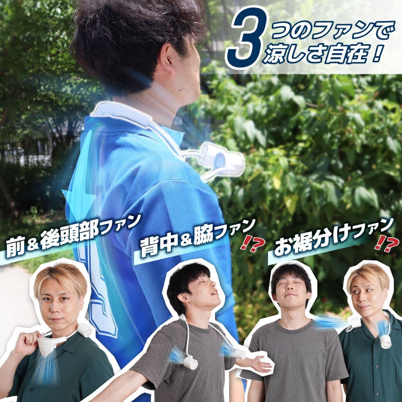 3方向から風が出て猛暑に立ち向かえるフレキシブル首掛け式扇風機