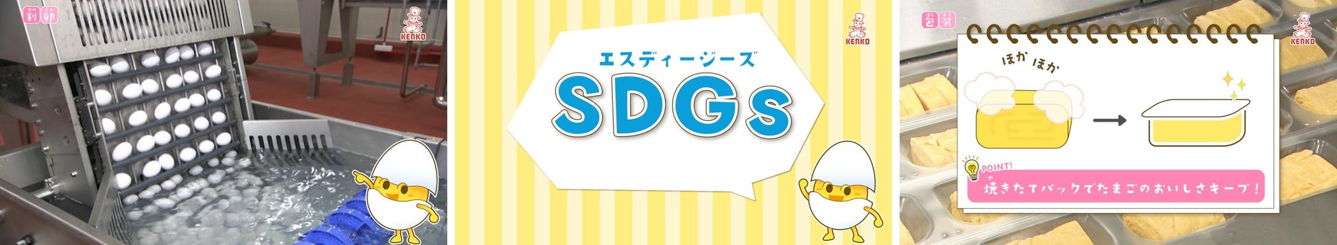 卵焼きの製造工程を、たまごのPRキャラクター「ケンタくん」がご案内します。ふっくらとした食感の美味しい卵焼きを作るためのポイントや厚焼き卵とだし巻き卵のそれぞれの作り方、SDGsに関連する取り組み、安全・安心な商品づくりなど、クイズを交えながら工場で商品ができるまでを楽しく学ぶ動画です。(約11分)