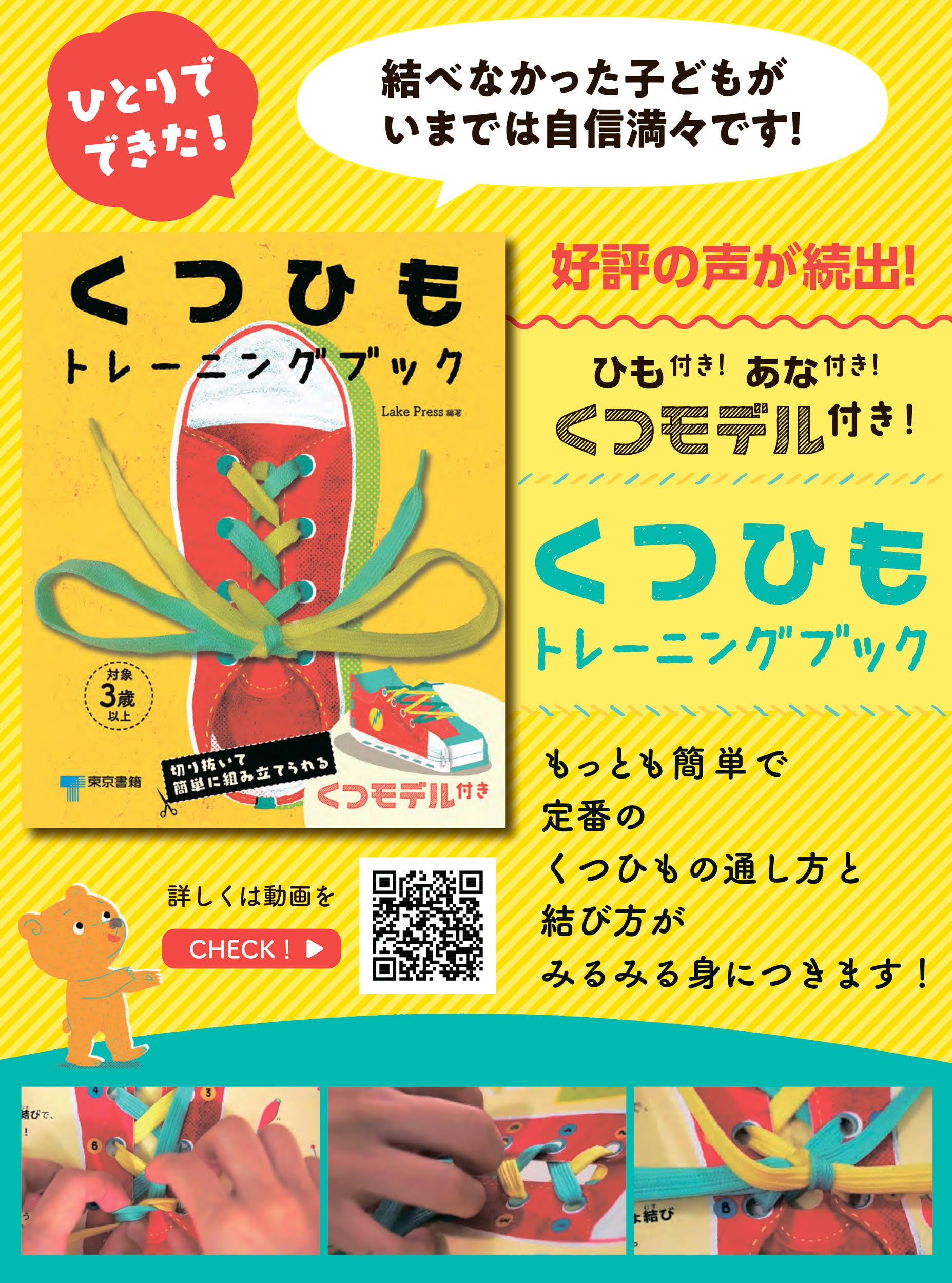 東京書籍株式会社から2017年7月に発売されました『くつひもトレーニングブック』。この度(2024年4月)、待望の重版となりました。