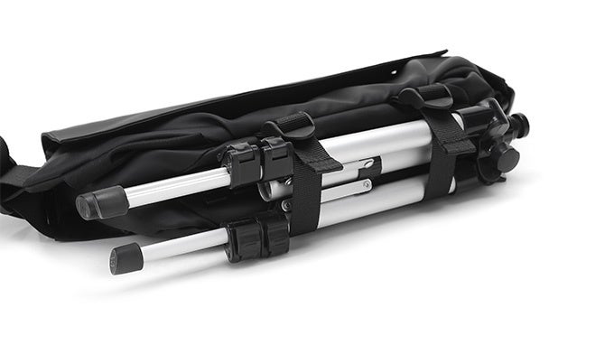 下部のストラップは伸縮式で、撮影用三脚や自転車のロック、脱いだ服などを掛けることができます。