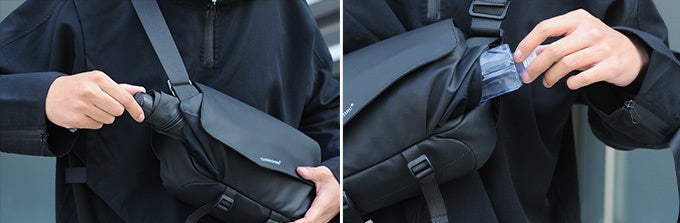 中身をすぐに取り出しやすく、体にぴったりとフィットして両手も塞がらないボディバッグ「COLUMROO」。