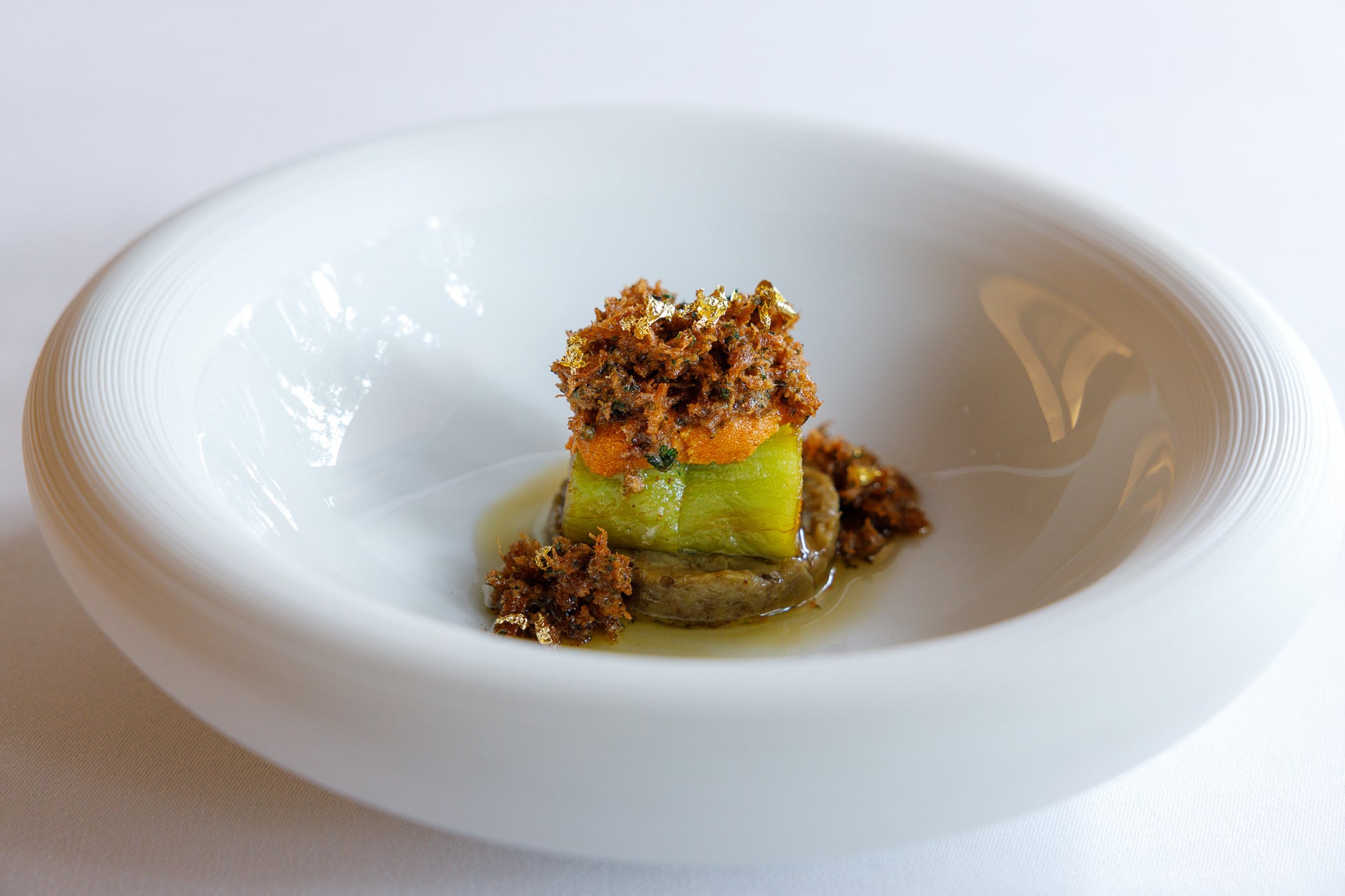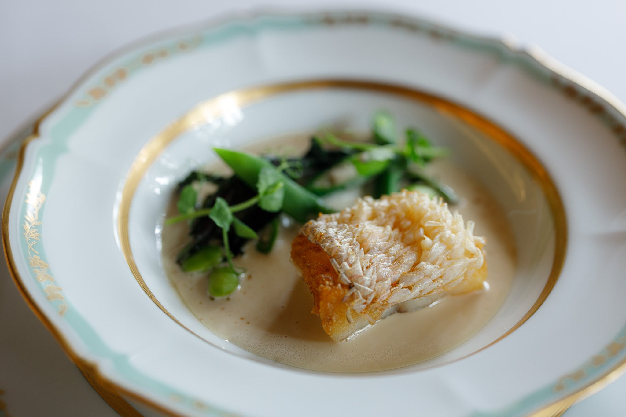 本プランでは、春から初夏にかけての京都・滋賀の食材を中心に構成した全11品のコース料理を提供します。各料理は、素材の特性や季節性を考慮した構成とし、シャンパーニュおよびワインペアリングとの組み合わせを前提にご用意。会場となる個室は、明治期に建てられた国指定重要文化財 長楽館本館内に位置し、シャンデリアや家具など当時の意匠を残す空間です。