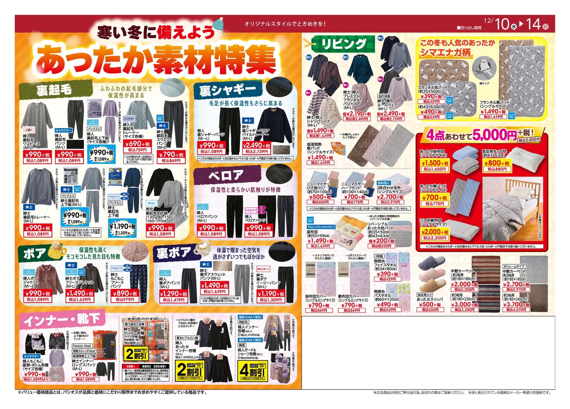 寒い冬に備えて、あったかアイテムがお買得なパシオスへぜひお越しください。