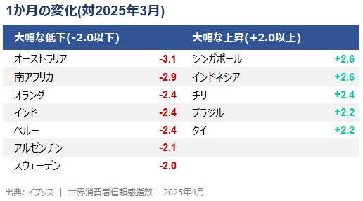 世界の消費者信頼感は2か月連続でわずかに低下「イプソス世界消費者信頼感指数 2025年4月」を公開