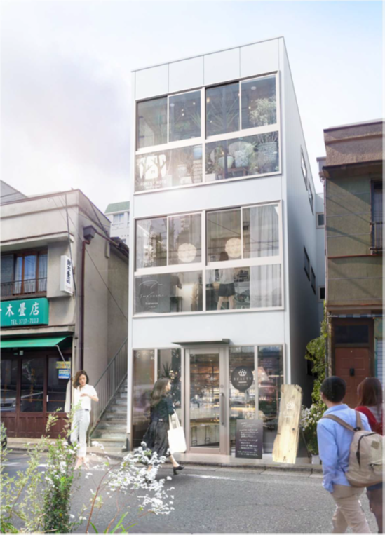本プロジェクトは、当社が将来性を見込み、土地購入から建物建築まで一貫して手掛けた商業テナントビルです。商店街を通り抜けた先の閑静な住宅街に隣接しつつも、駅へ向かう生活道路として一定の交通量を確保する「緑小通り」に面しており、通りに面した大きなガラス面を持つデザインが特徴であるため、高い視認性を有しています。再開発による街のさらなる進化が進む中、地域の新たな賑わい創出に貢献することが期待されます。