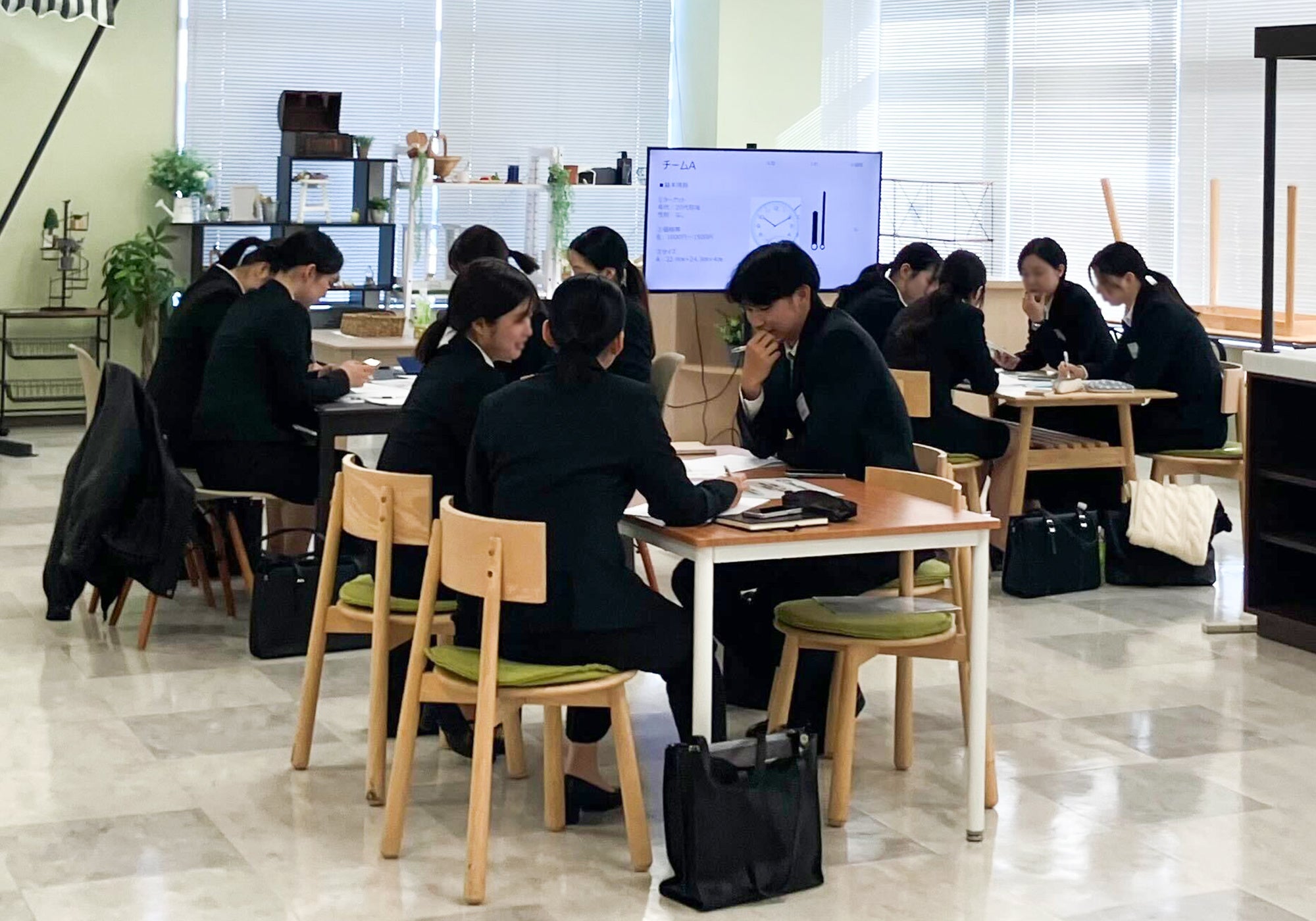 取引先に向けた商品企画をグループで考え、提案プレゼンに挑戦。「どんなニーズがあるか」「どんな人に向けて?」など、あなたの「消費者目線」が新商品を生むカギに!