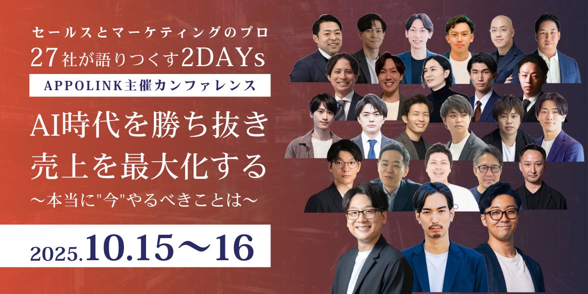 新時代の営業手法を提案する株式会社Emooove(本社:東京都渋谷区、代表取締役CEO:藤澤諒一)は、『APPOLINKカンファレンス - AI時代を勝ち抜き、売上を最大化する』を2025年10月15日(火)・16日(水)にオンラインで共催することをお知らせします。