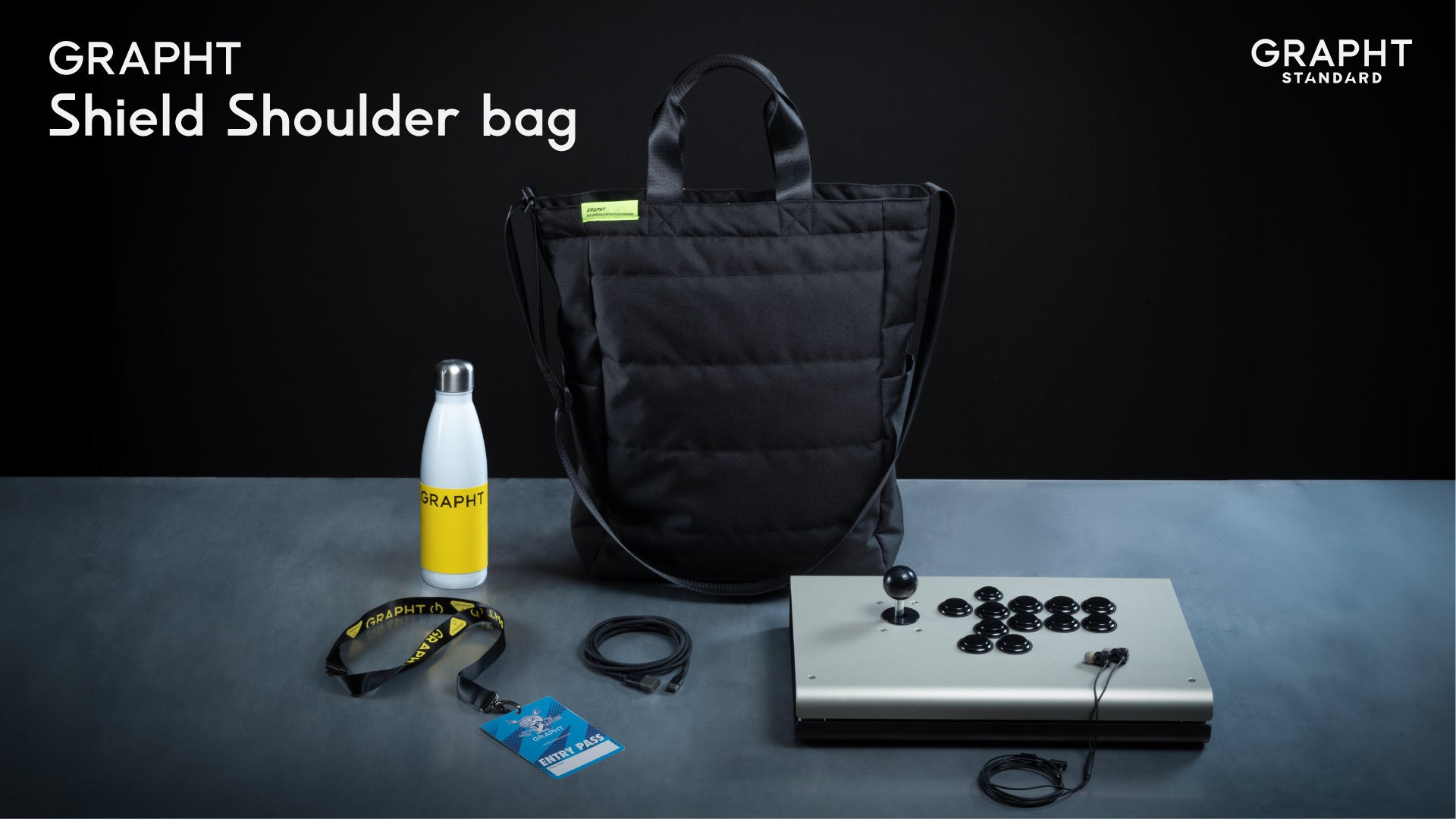 EVO Japan 2026内GRAPHTブースでは、アーケードコントローラー『iO』のセット品をご購入いただいた方を対象に、新商品『GRAPHT Shield Shoulder bag』をプレゼントします。(数量限定、なくなり次第終了となります。)
