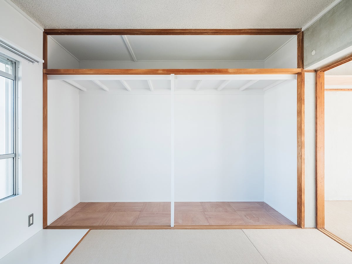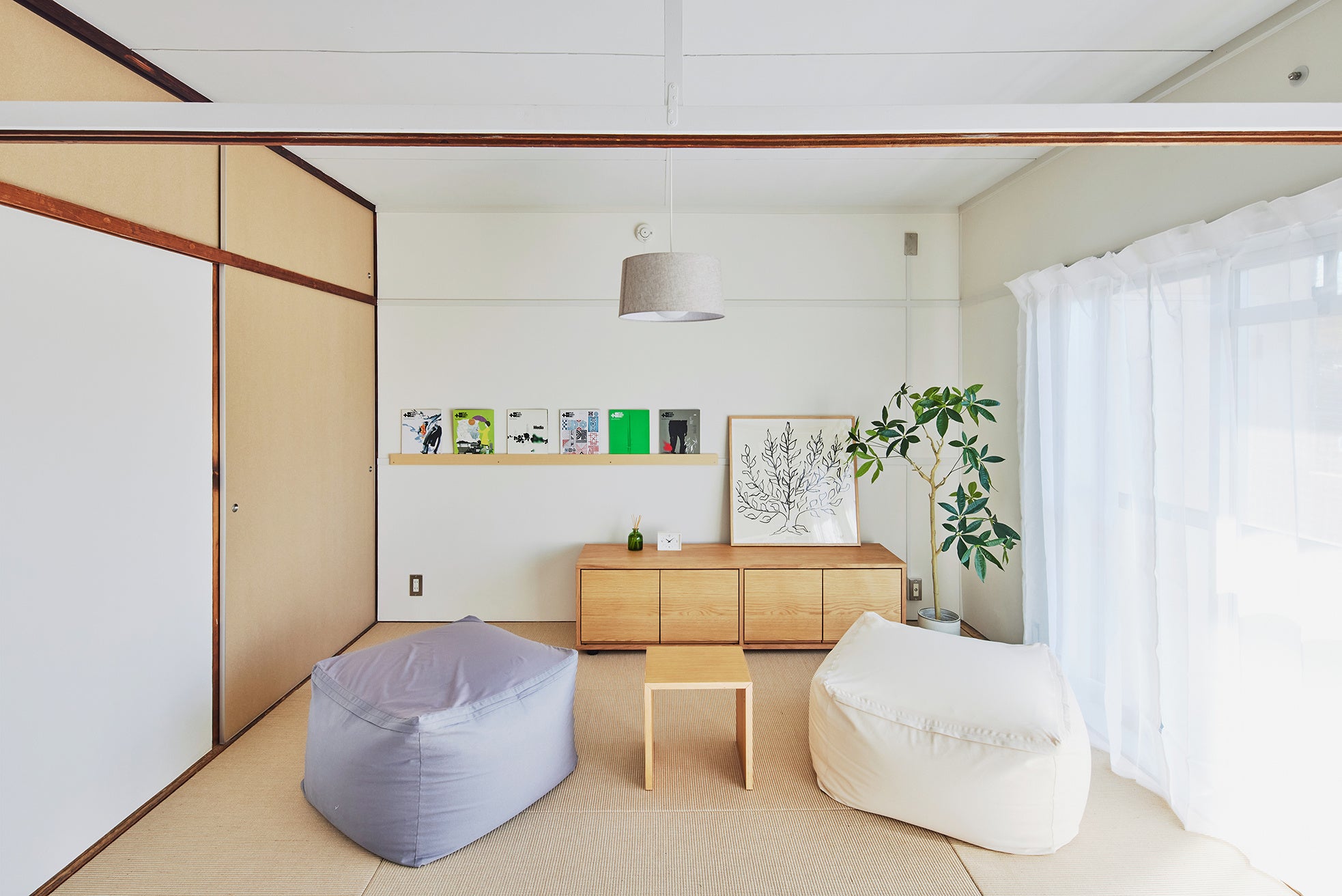 ふすまや不要な壁を撤去し、広い一室空間とすることで、住みながら間取りを自由に編集できるような新たな住まいとしました。既存の間取りに自分のライフスタイルを当てはめるのではなく、自分のライフスタイルに合せて間取りを編集できる暮らしが出来ます。