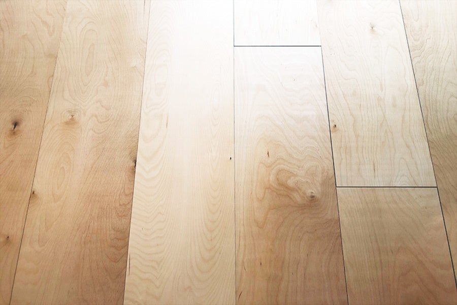 白樺と杉を使用したハイブリッド合板フローリングです。表面を白樺とし、合板基材を杉材とすることで、無垢材にみられる反りを少なくしました。