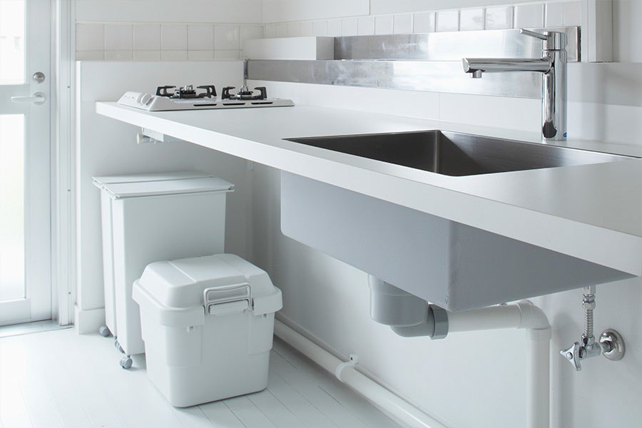 壁付け専用のカウンターキッチン。脚がないので、キッチン下が自由に使えます。